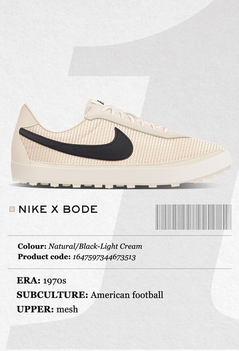 From a football football shoe to an American gridiron football shoe, could this be the passing of the It-shoe baton? While everyone knew the adidas Samba pretty well even before Wales Bonner worked her magic, Ms Emily Bode Aujla has managed to pluck something of a forgotten relic out of Nike’s archives. Hot on the heels of her black leather reworking of the silhouette (which hadn’t been seen since the 1970s), this edition comes with a natural-coloured woven mesh upper. The original’s waffle tread is married to a chunkier midsole, with BODE branding on the tongue and cute coloured charms on the laces. Be quick to grab yours.