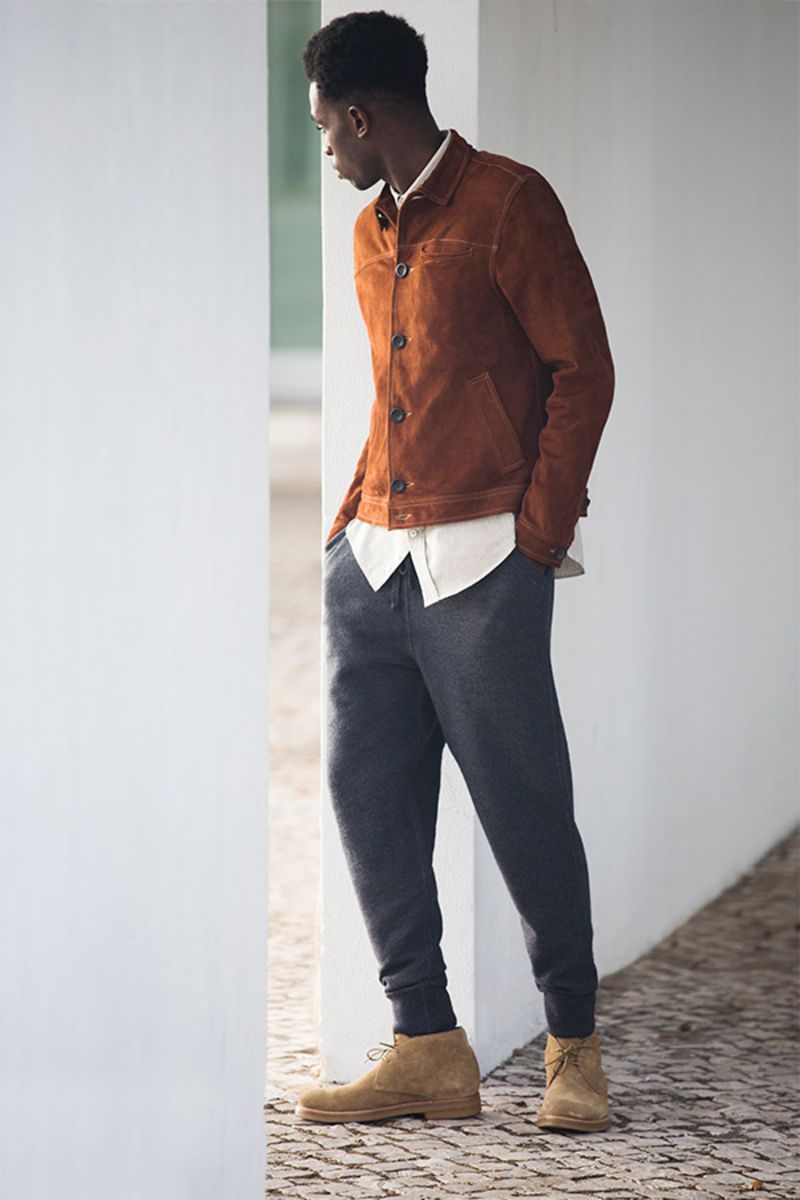 Channel the laid-back style icons of the 1970s (think Mr Robert Redford or a young Mr Robert De Niro) and wear your suede jacket over a light linen or cotton shirt, with the collar unbuttoned. Colour-wise, off-white, beige and grey will complement brown shades particularly well.