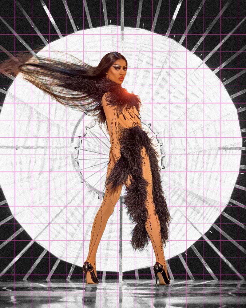 Tayce on RuPaul’s Drag Race (2021). Photograph by Mr Guy Levy/World Of Wonder/BBC