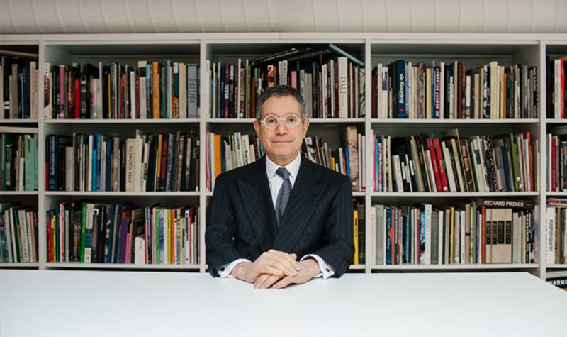 Always impeccably dressed, Mr Deitch, 62, is wearing an Italian bespoke grey pinstripe suit on the cold morning when MR PORTER drops by. The crisp shirt is white, the collar spread, the cufflinks gold, the tie black. Topping off the look is his sartorial signature: eyeglasses custom-made in Germany, with round frames that dominate his face. He dons them, perhaps, with a wink; while their shape and prominence suggest the comically nearsighted Mr Magoo, Mr Deitch’s eye for art is obviously keen.