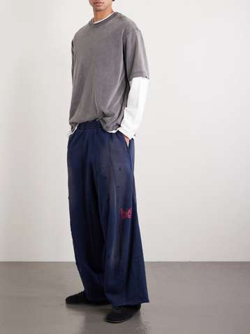 بنطال رياضي Deconstructed HD واسع الساقين من قطن الجيرسي بتأثير معتّق