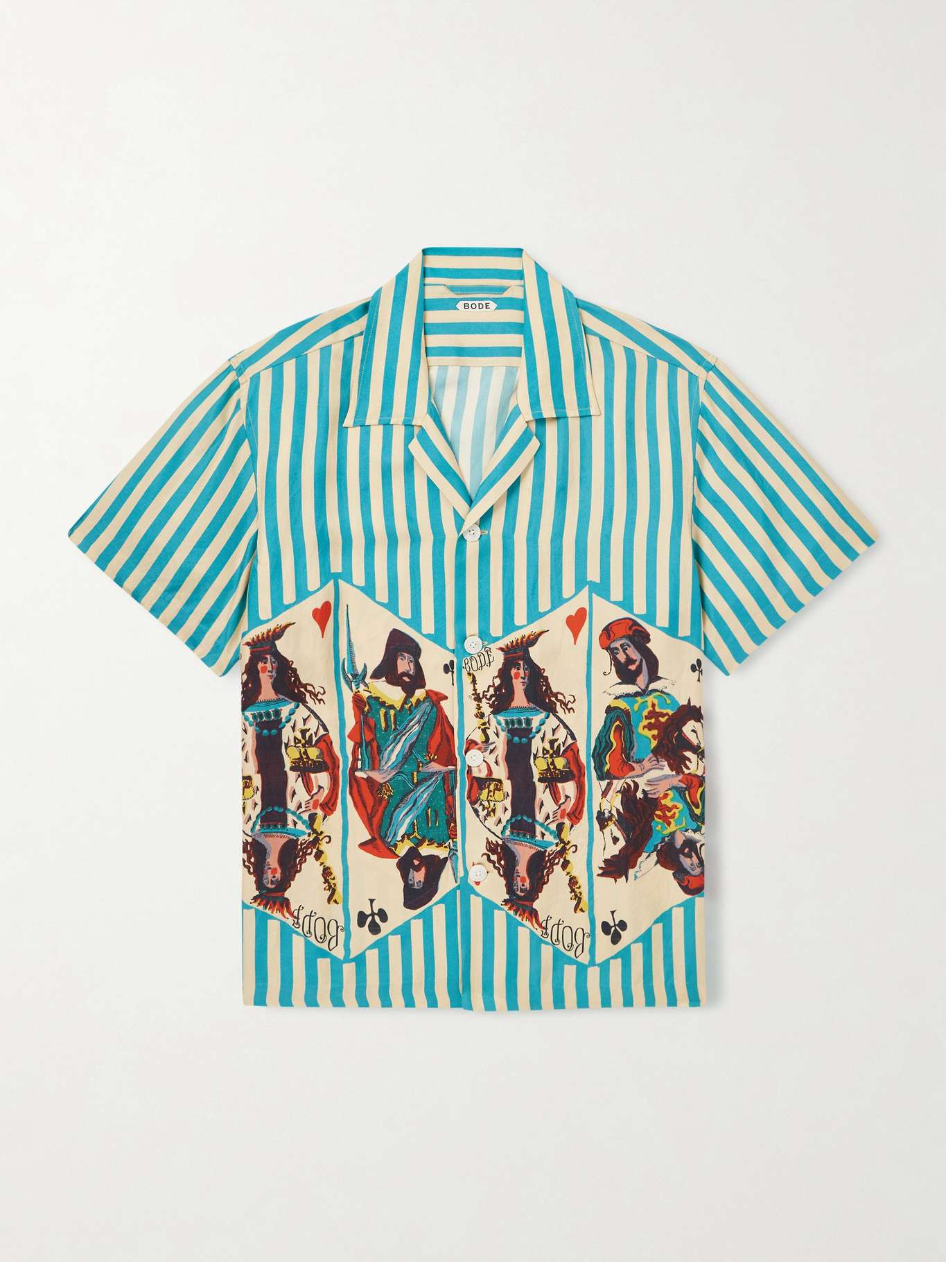 BODE قميص Royals من الحرير مزين ومخطط بطبعات مع ياقة بطية