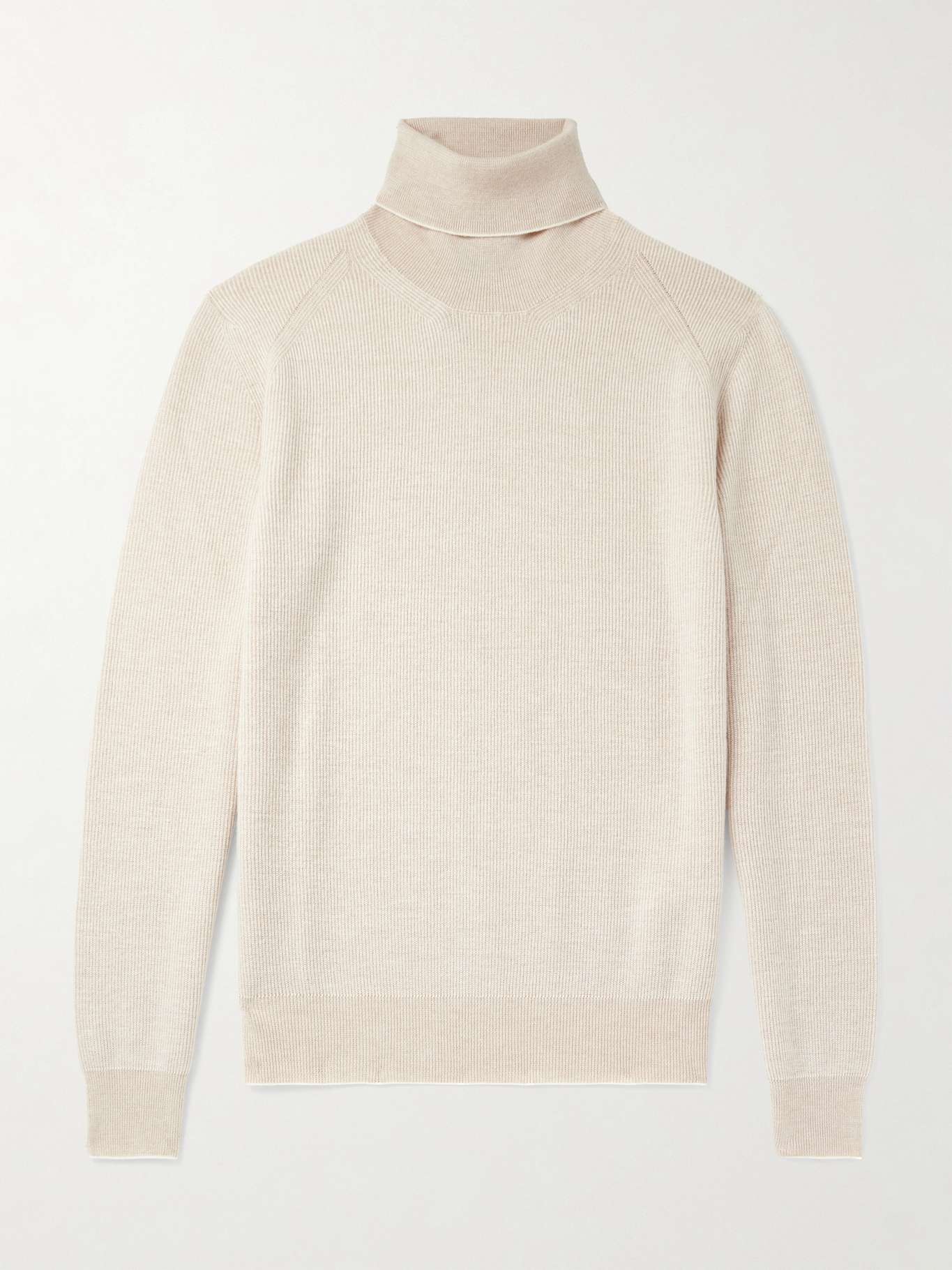 BRIONI كنزة رياضية بياقة ملفوفة من مزيج الصوف والكشمير بتصميم مضلع