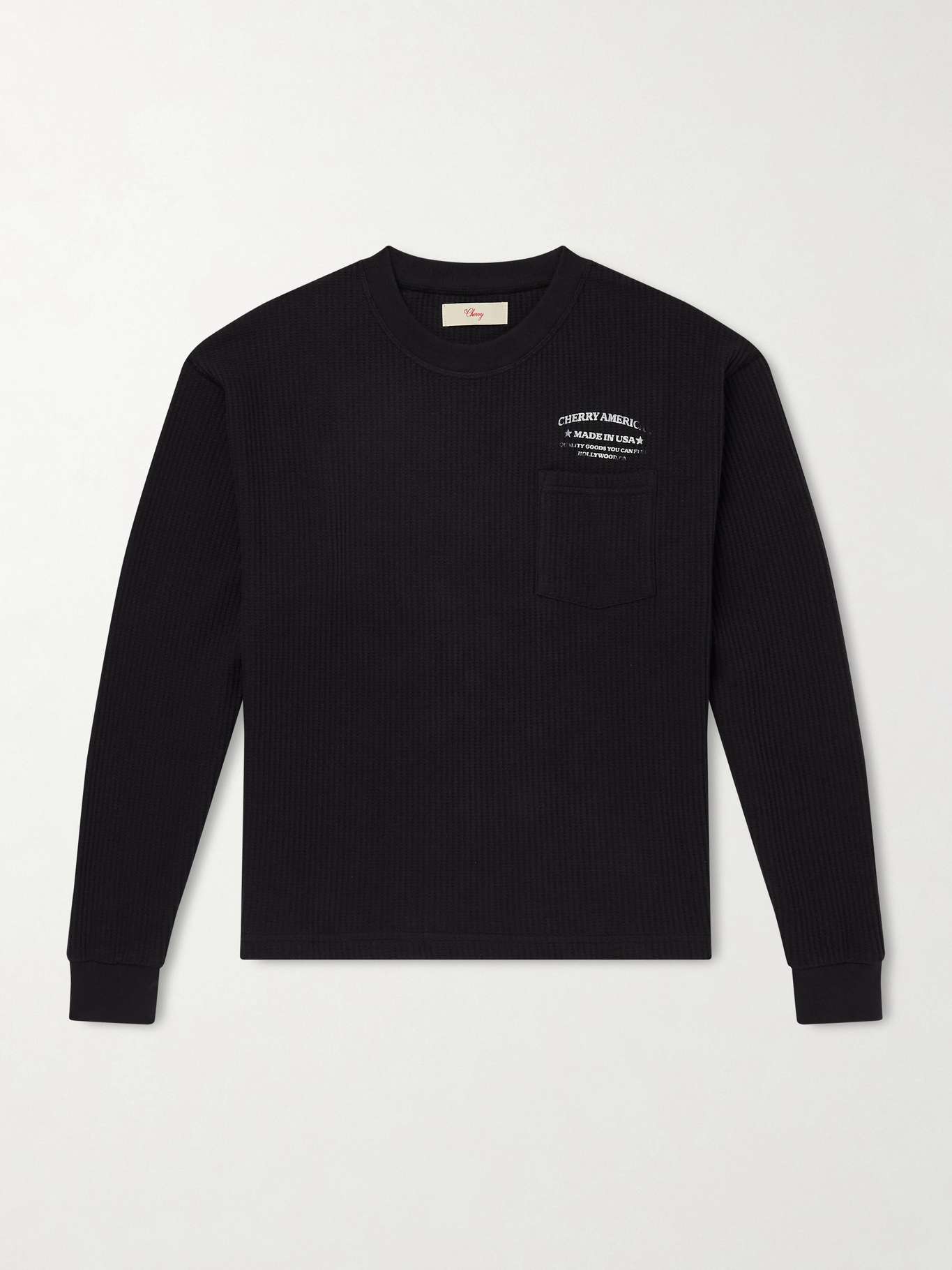 CHERRY LOS ANGELES تي شيرت Ranch Wear Thermal من مزيج قطن الجيرسي المضلّع مزين بطبعة شعار العلامة