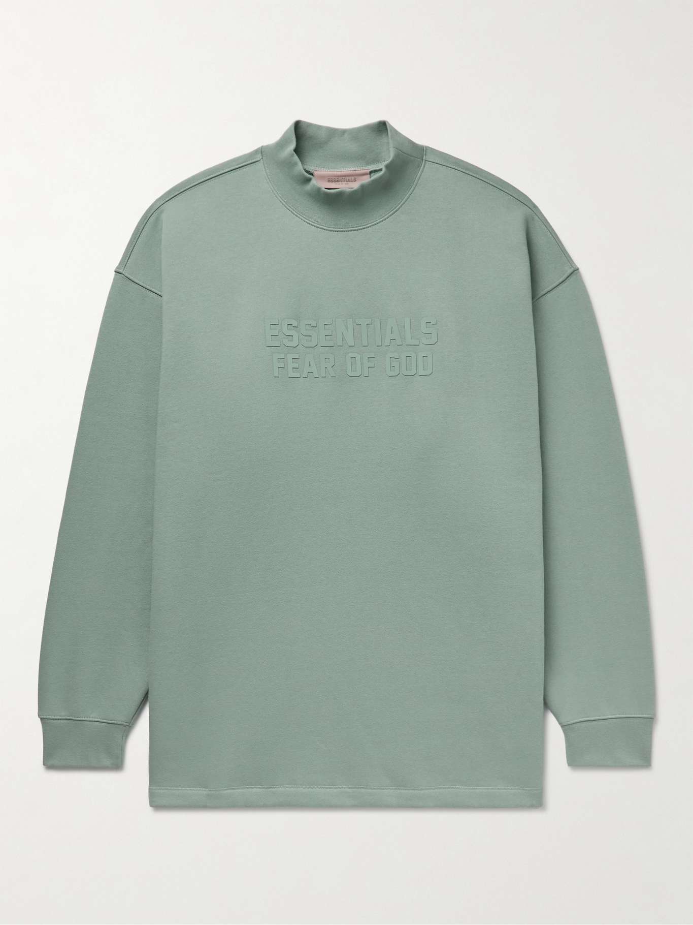 FEAR OF GOD ESSENTIALS سويت شيرت من مزيج قطن الجيرسي بياقة عالية ودائرية مُزيّن برقعة شعار العلامة