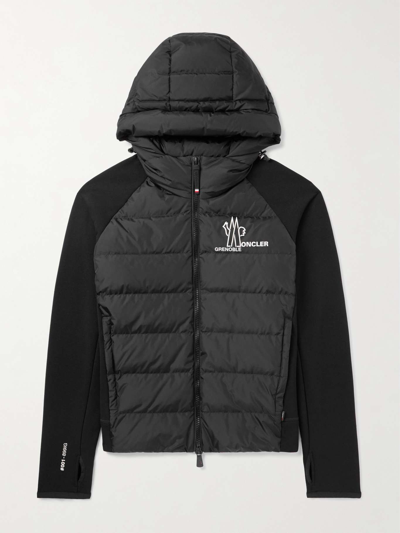 MONCLER GRENOBLE جاكيت بقبعة مبطن من القماش العازل والجيرسي المطاط المحشو بالزغب مزين بطبعة شعار العلامة