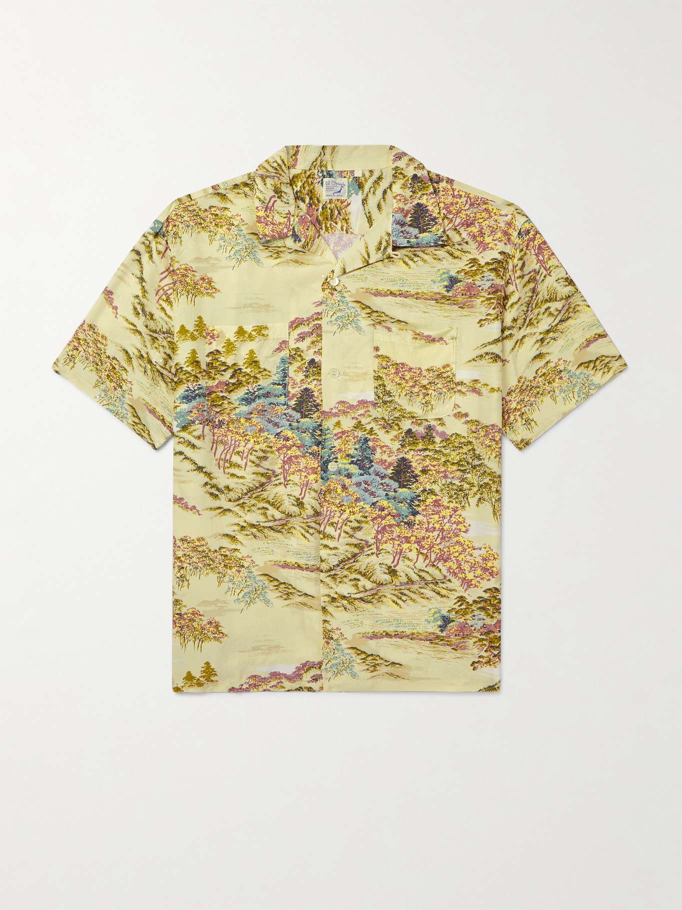 سيكون هذا القميص من علامة OrSlow إضافة رائعة لمجموعة ملابسك الخاصة بالعطلة. زُين بطبعة لمنظر طبيعي مُستوحى من الأنماط القديمة بأسلوب يُحاكي أنماط هاواي، كما يتّسم بياقة قابلة للارتداء بطريقتين.