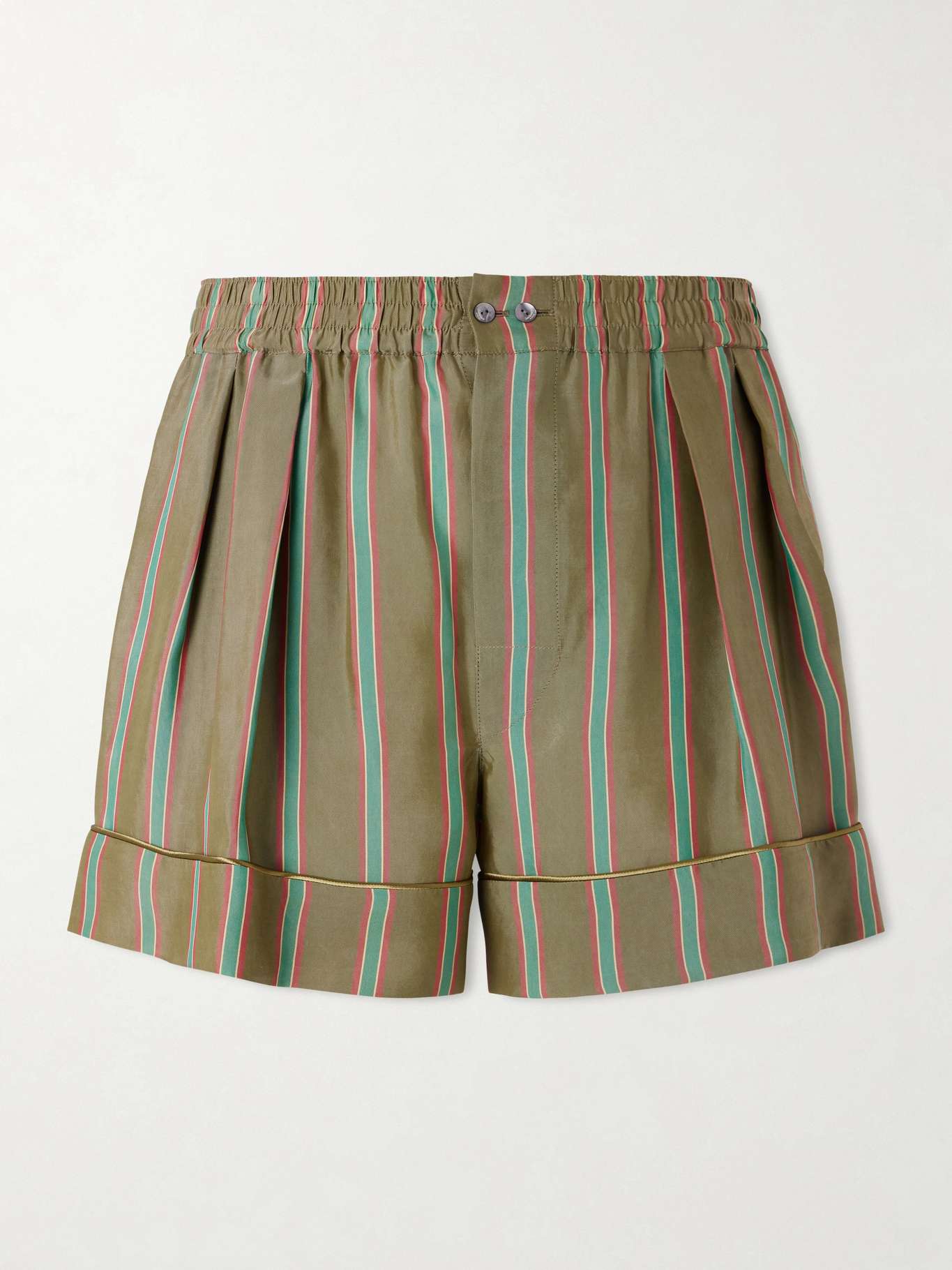 SAINT LAURENT شورت واسع الساقين من التويل المعاد تدويره ومخطط وبكسرات وبقصة أرجل مستقيمة