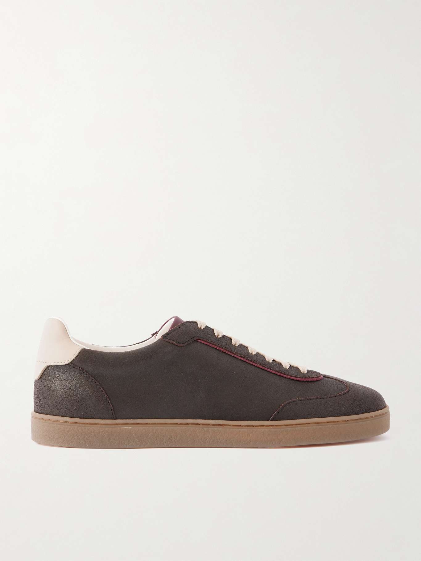 - جلد سويد (عجل) بني داكن مشمع، جلد باللونين النبيذي والسكري