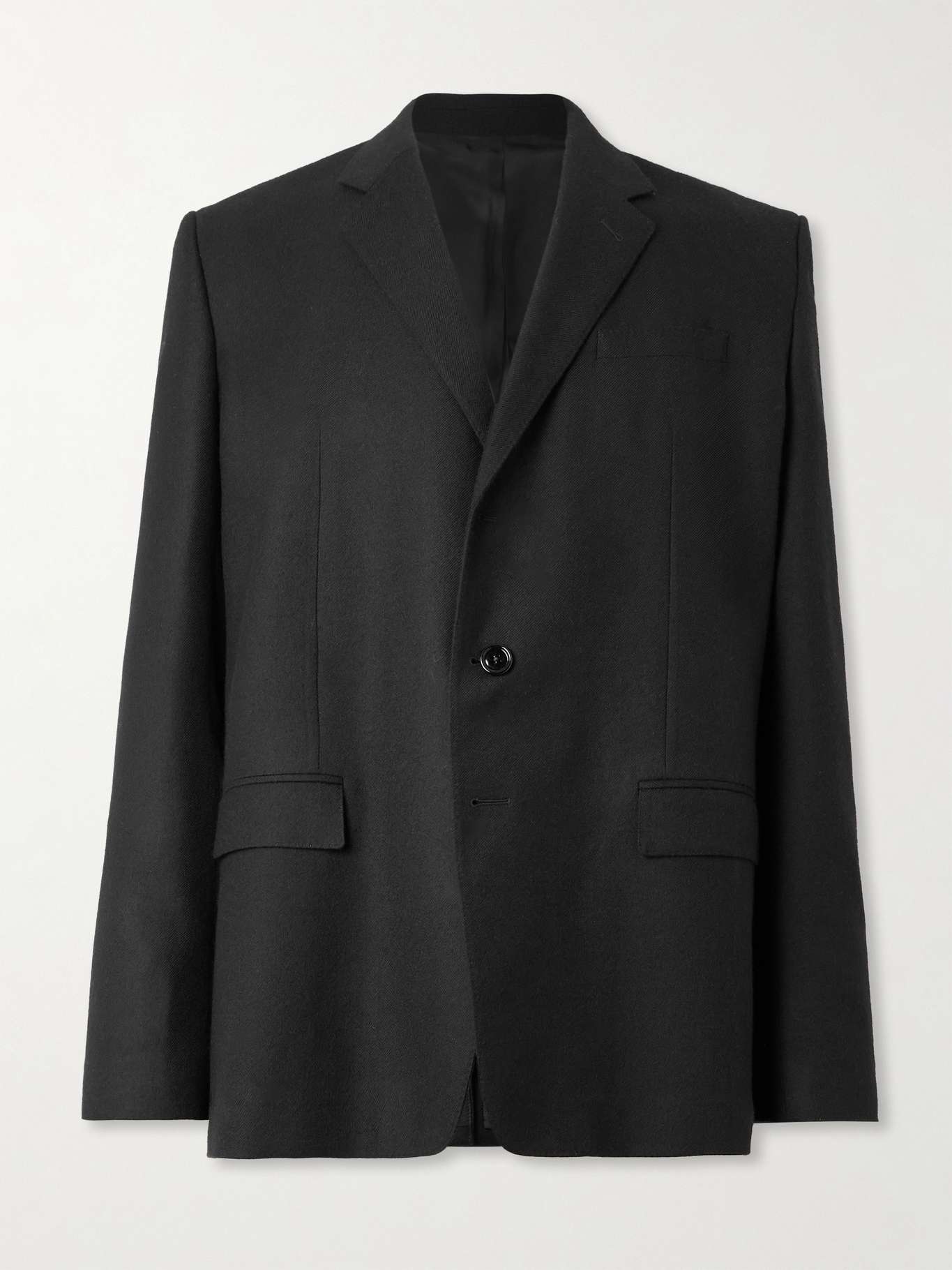 يُمكنك تنسيق هذا البليزر من توقيع CELINE HOMME إما مع قميص وبنطال رسمية أو مع تي شيرت وبنطال جينز. صُنع من كشمير التويل بقصة مربعة واسعة بعض الشيء مع أكتاف بتصميم هندسي وطيات صدر مشقوقة بمكان أعلى من المعتاد.