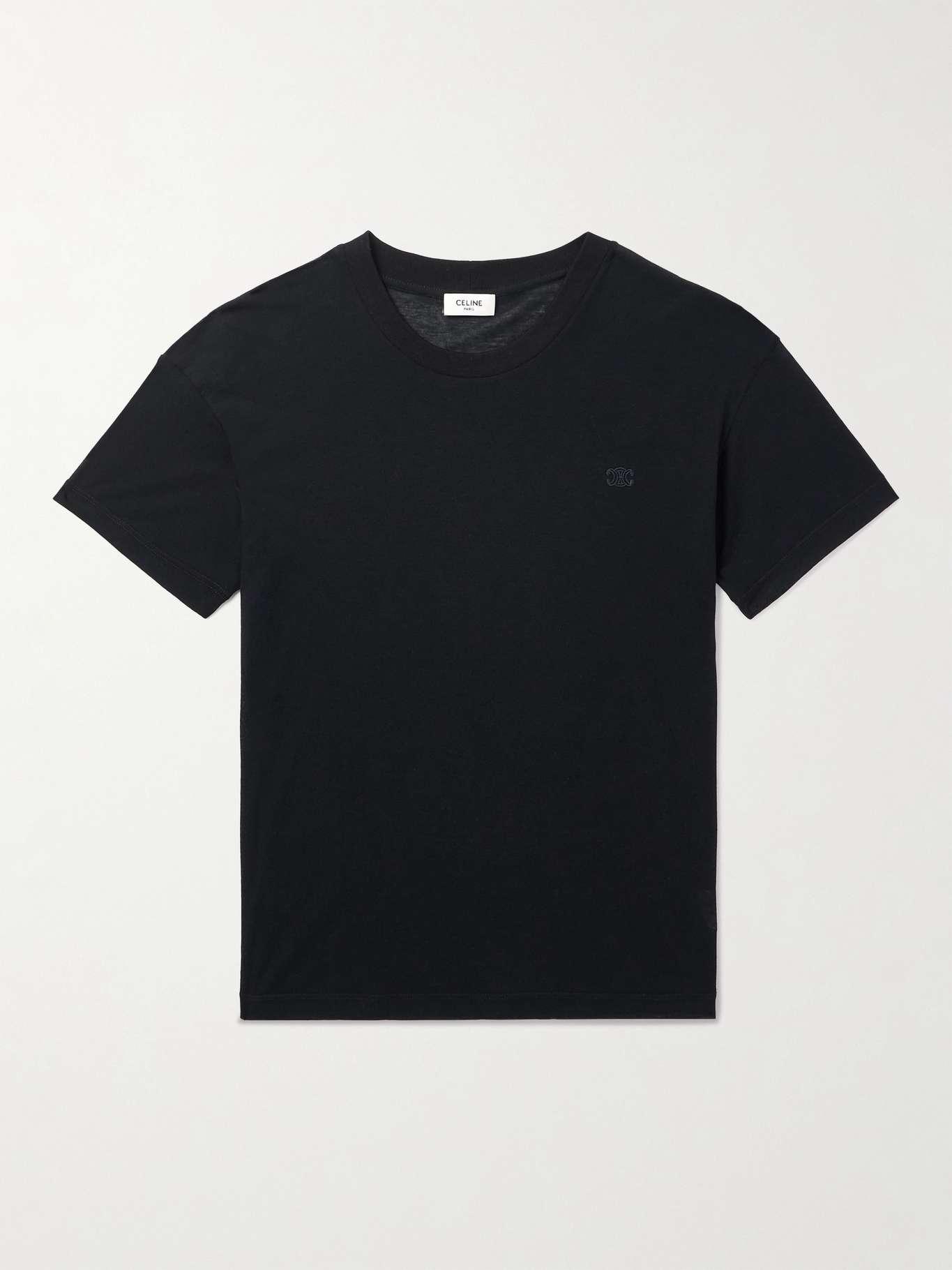 طُرز هذا التي شيرت من علامة CELINE HOMME بشعارها 'Triomphe' المستوحى من المعلم الباريسي الشهير، وبلون أسود مطابق للون قطن الجيرسي المصنوع منه. صُمم بقصة ضيقة ويُمكن اعتماده لتنسيق إطلالة غير رسمية.