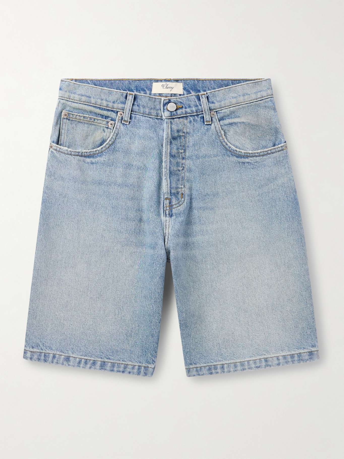 ازدادت شعبية شورتات الجينز خلال المواسم الأخيرة. صُنع هذا الإصدار من توقيع Cherry Los Angeles في لوس أنجلوس من الدنيم الذي يبلغ وزنه 14 أونصة بقصة مسترخية ذات أرجل مستقيمة.