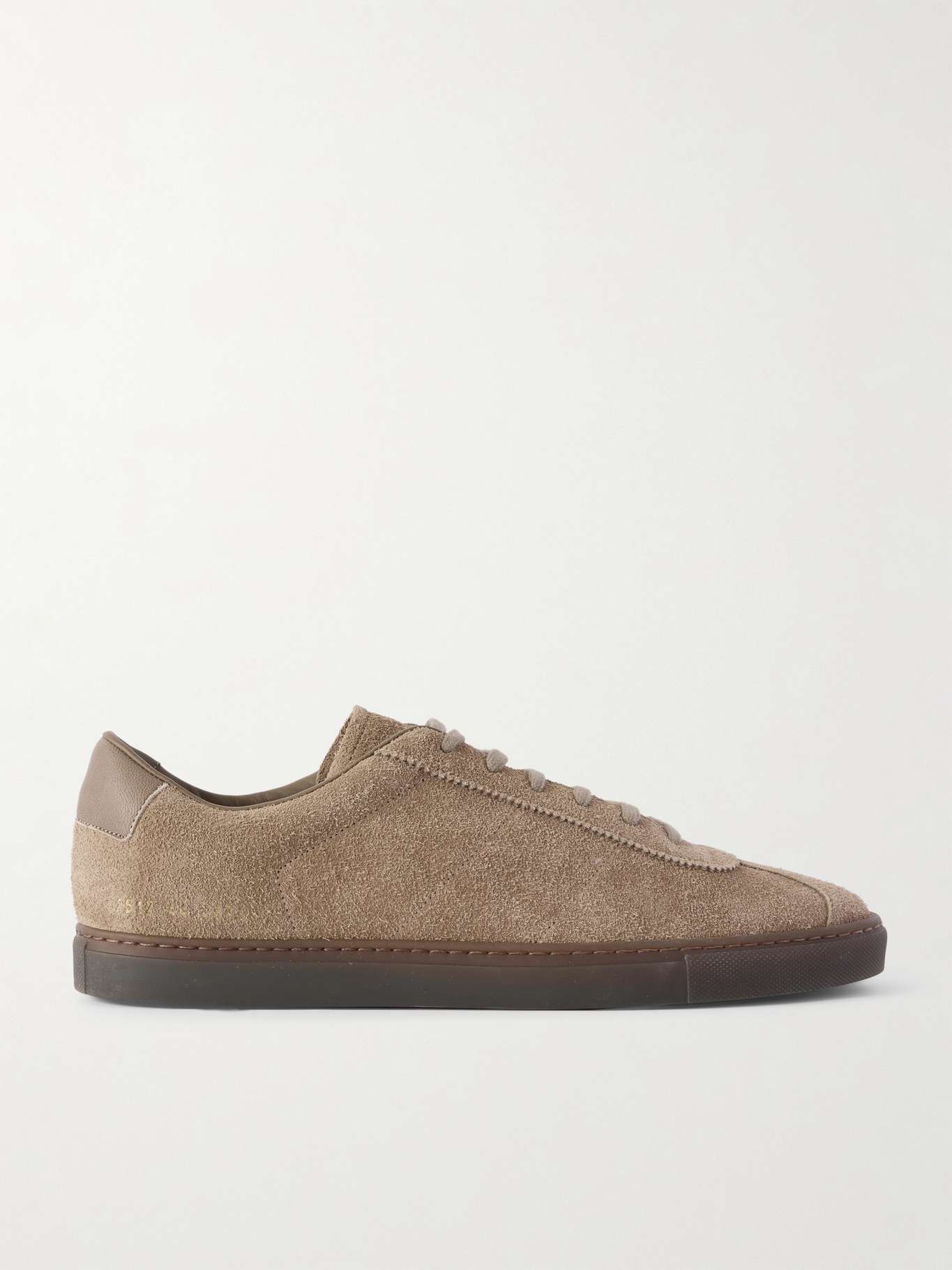 يُعد اللون البني بديلاً عصرياً للألوان الحيادية كالرمادي والأسود. صُنع حذاء السنيكرز هذا من توقيع Common Projects من جلد السويد المُمشط بهذا اللون سهل التنسيق. يتسم بحواف من الجلد على الكعبين وزُين بطبعة الأرقام التسلسلية المميزة لدى العلامة باللون الذهبي فوق النعل.