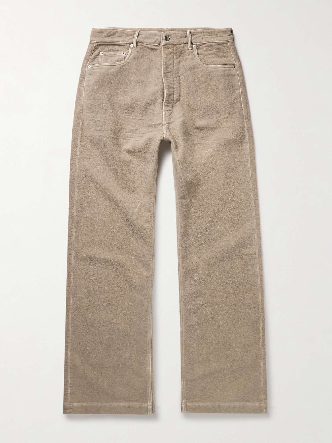 تُقدم علامة Rick Owens بنطال 'Geth' المزود بخمسة جيوب كبنطال الجينز. صُنع في إيطاليا من القطن الممشط للمسة نهائية مخملية، كما صُمم بقصة مسترخية واسعة الساقين ويتسم بحاشية طويلة تلامس الأرض.