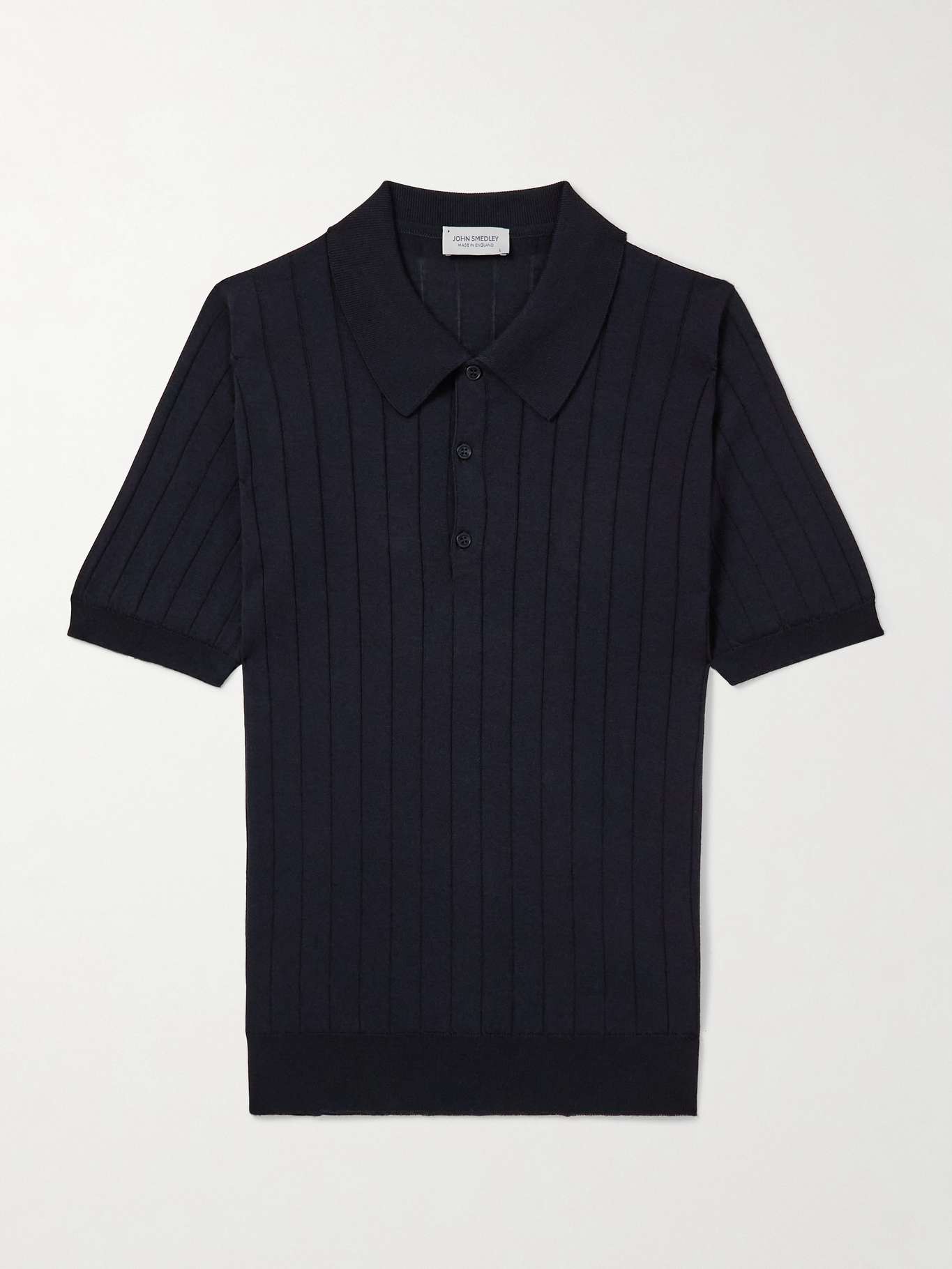 JOHN SMEDLEY كنزة بولو مضلعة من مزيج القطن والصوف