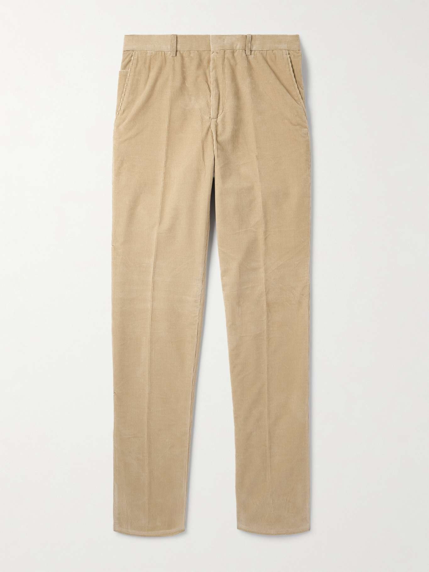 كان المخمل المضلع القماش المفضل لدى أكثر الرجال أناقة على مر التاريخ، مثل Mick Jagger و Steve McQueen. صُنع بنطال 'Jarno Hamptons' من توقيع Loro Piana في إيطاليا من القطن باللون البيج بقصة أرجل مستقيمة تضيق تدريجياً بشكل بسيط. يُمكنك تنسيقه مع حذاء لوفر أو حذاء ديربي أو حذاء رسمي مزود بأحزمة.