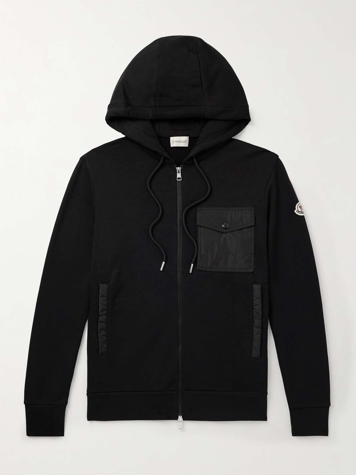 تشتهر الملابس غير الرسمية التي تقدمها علامة Moncler بالراحة. ومثال على ذلك، صُنعت كنزة الهودي هذه من مزيج قطن الجيرسي ببطانة من الصوف الناعم والزغبي. صُممت بقصة مسترخية وتزدان بجيوب بطية من القماش العازل، وتتميز بحواف تذكر بالقطع الخارجية المميزة لدى العلامة.