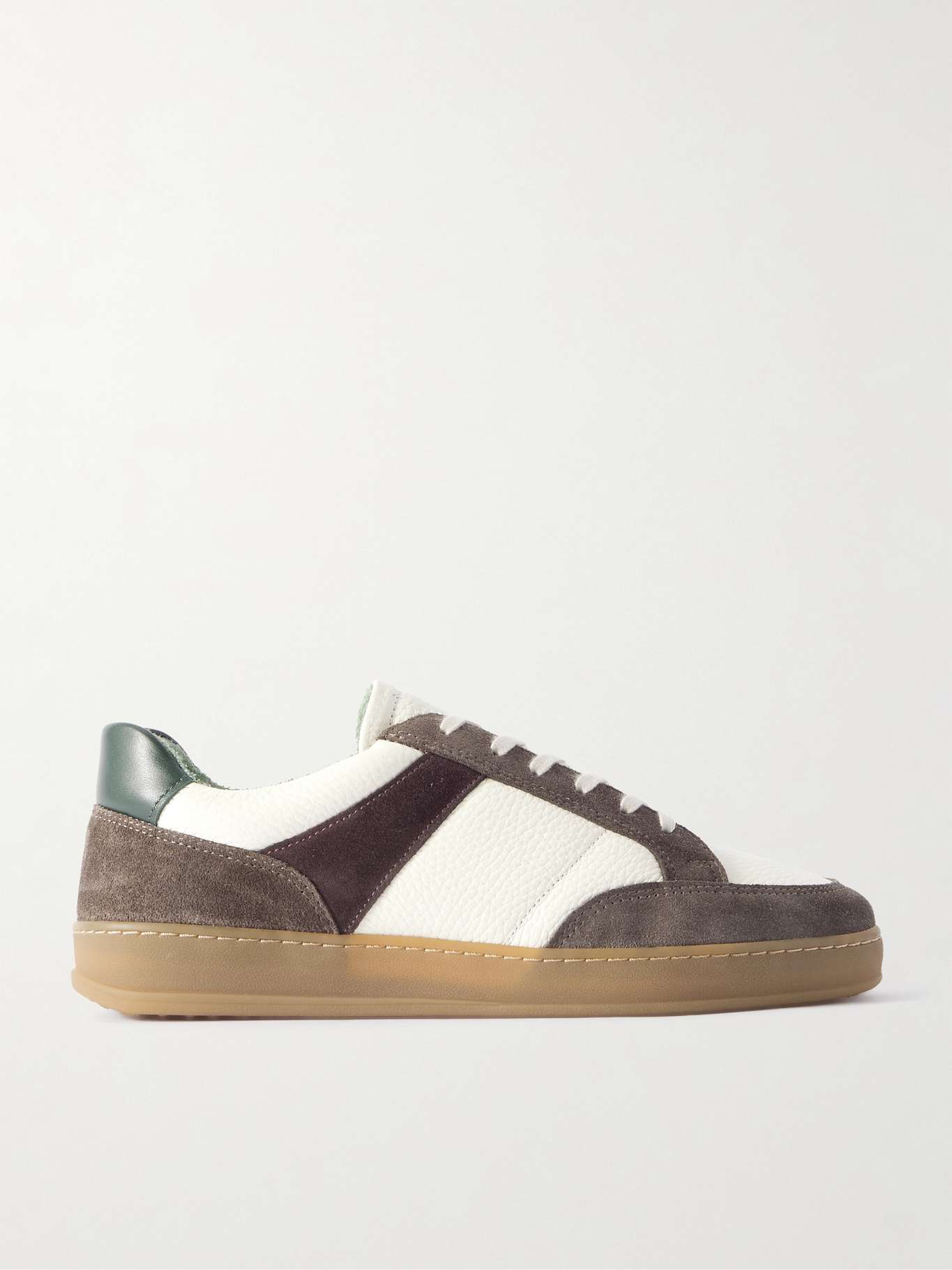 من تصميم MR PORTER.تُقدم علامة .Mr P حذاء السنيكرز هذا المصمم على غرار أنماط التنس بتأثير معتق وذلك بفضل أقسام الألوان المتباينة. صُنع من قطع من الجلد الناعم وجلد السويد وتم تبطينه بقماش تيري الذي يتميز بقدرته على الامتصاص وسماحه بمرور الهواء.