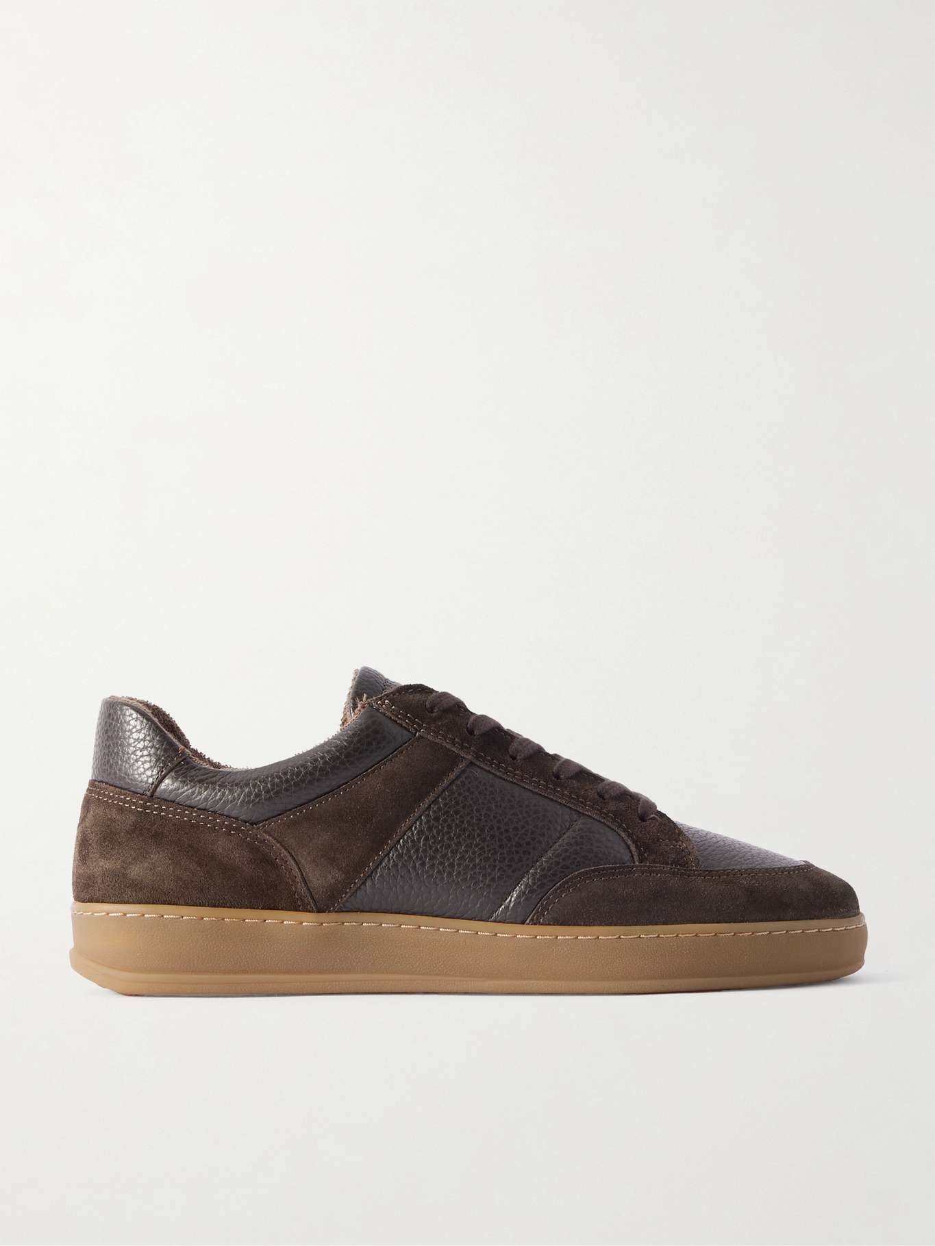 من تصميم MR PORTER.تُقدم علامة .Mr P حذاء السنيكرز هذا المصمم على غرار أنماط التنس بتأثير معتق. صُنع من قطع من الجلد النافر بالكامل وجلد السويد وتم تبطينه بقماش تيري الذي يتميز بقدرته على الامتصاص وسماحه بمرور الهواء.
