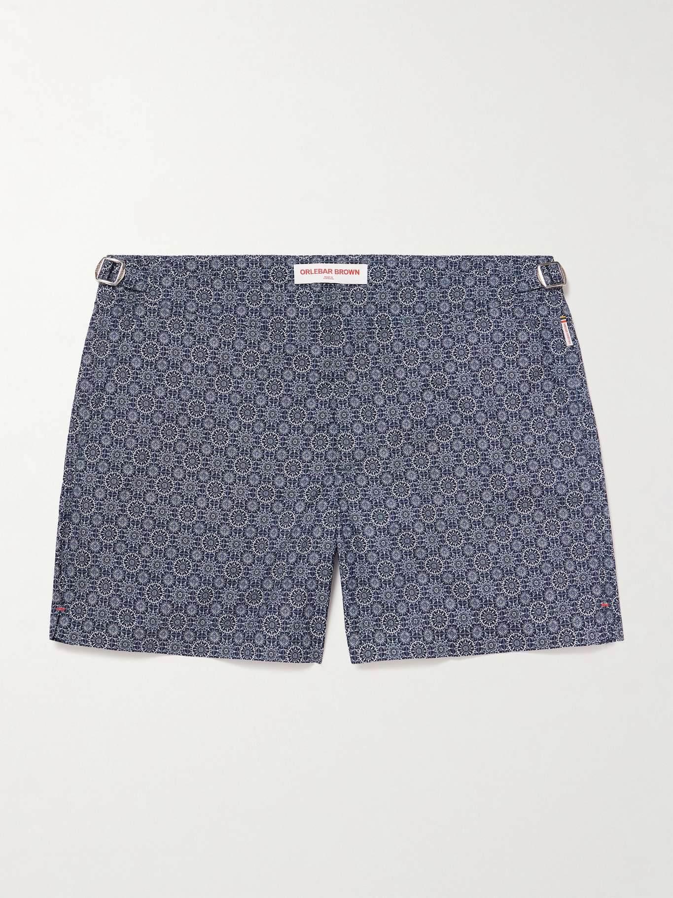 تستخدم علامة Orlebar Brown تفاصيل القطع الرسمية التقليدية لتصميم شورت السباحة 'Setter' هذا. صُنع من القماش العازل سريع الجفاف والمُعاد تدويره وتم تزويده بأطراف شد جانبية قابلة للتعديل كما زُين بطبعة مستوحاة من البلاط.