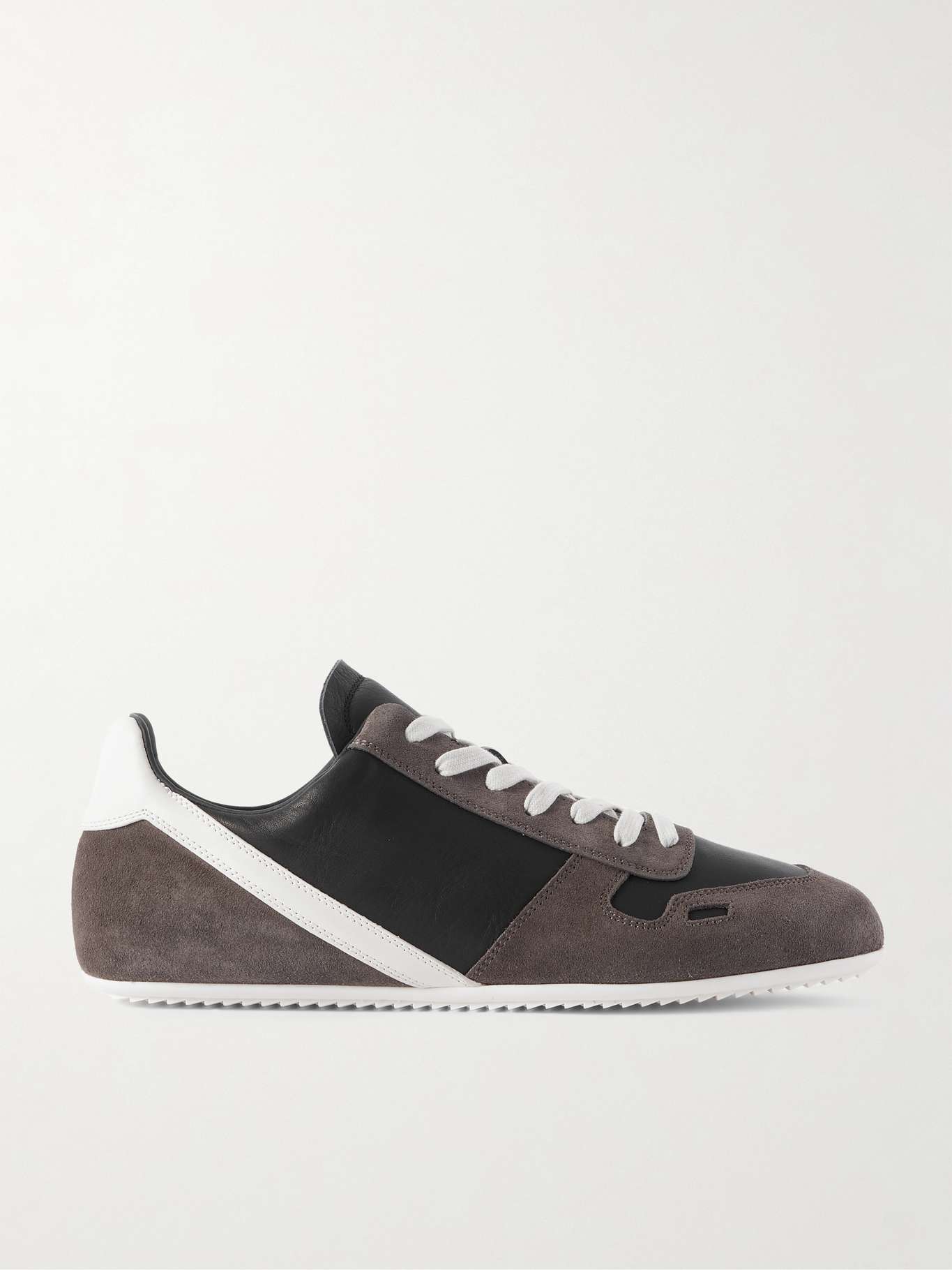 يتسم حذاء سنيكرز هذا من توقيع Rick Owens بجزء علوي أنيق مصمم من قطع قماشية على غرار الأنماط الرياضية القديمة. صُنع في إيطاليا من جلد السويد الناعم والجلد ويستقر على نعل مطاطي محزز 'بشكل أسنان القرش' والذي يُعد مميزاً لدى العلامة.