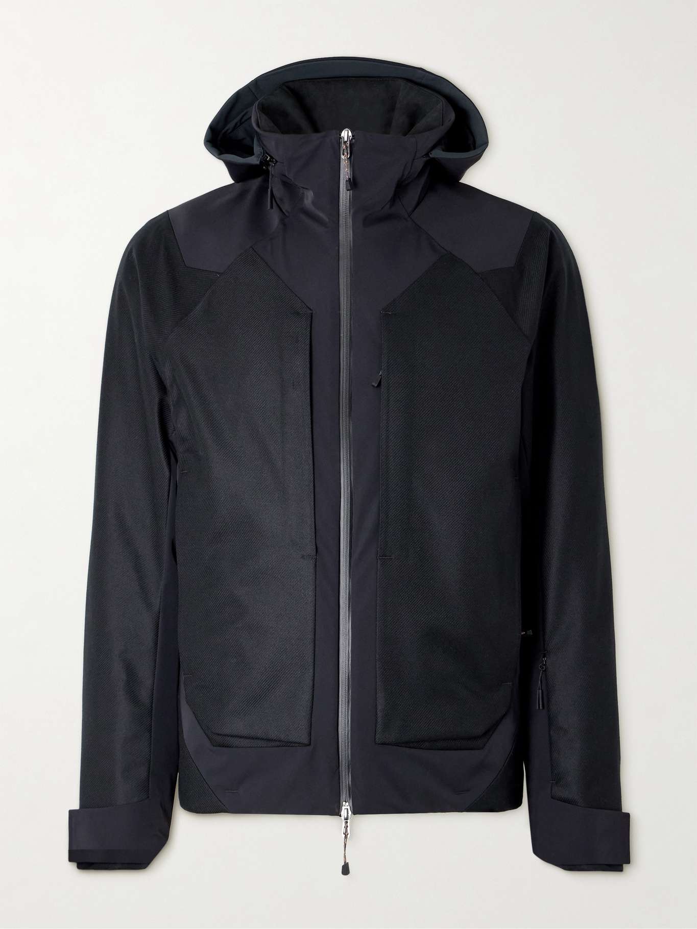 - مزيج صوف بكر وكشمير باللون الكحلي، وقماش عازل مطاطي