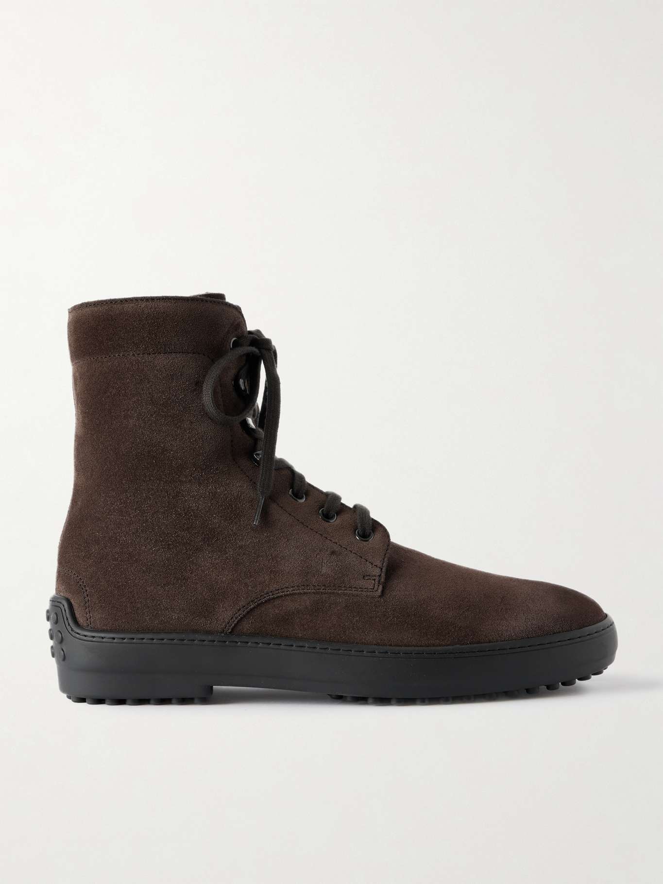 تُقدم علامة Tod's هذا البوت المصنوع في إيطاليا من جلد السويد والذي يجمع ما بين الأناقة والسمة العملية بشكل متوازن. صُمم على غرار الأحذية الخفيفة وأحذية التنزه، وتم تزويده بثقوب مزودة بمشابك للأربطة بلون رمادي معدني ويستقر على نعل مطاطي متين مزين مُحبب بأسلوب 'Gommimo' المميز لدى العلامة.
