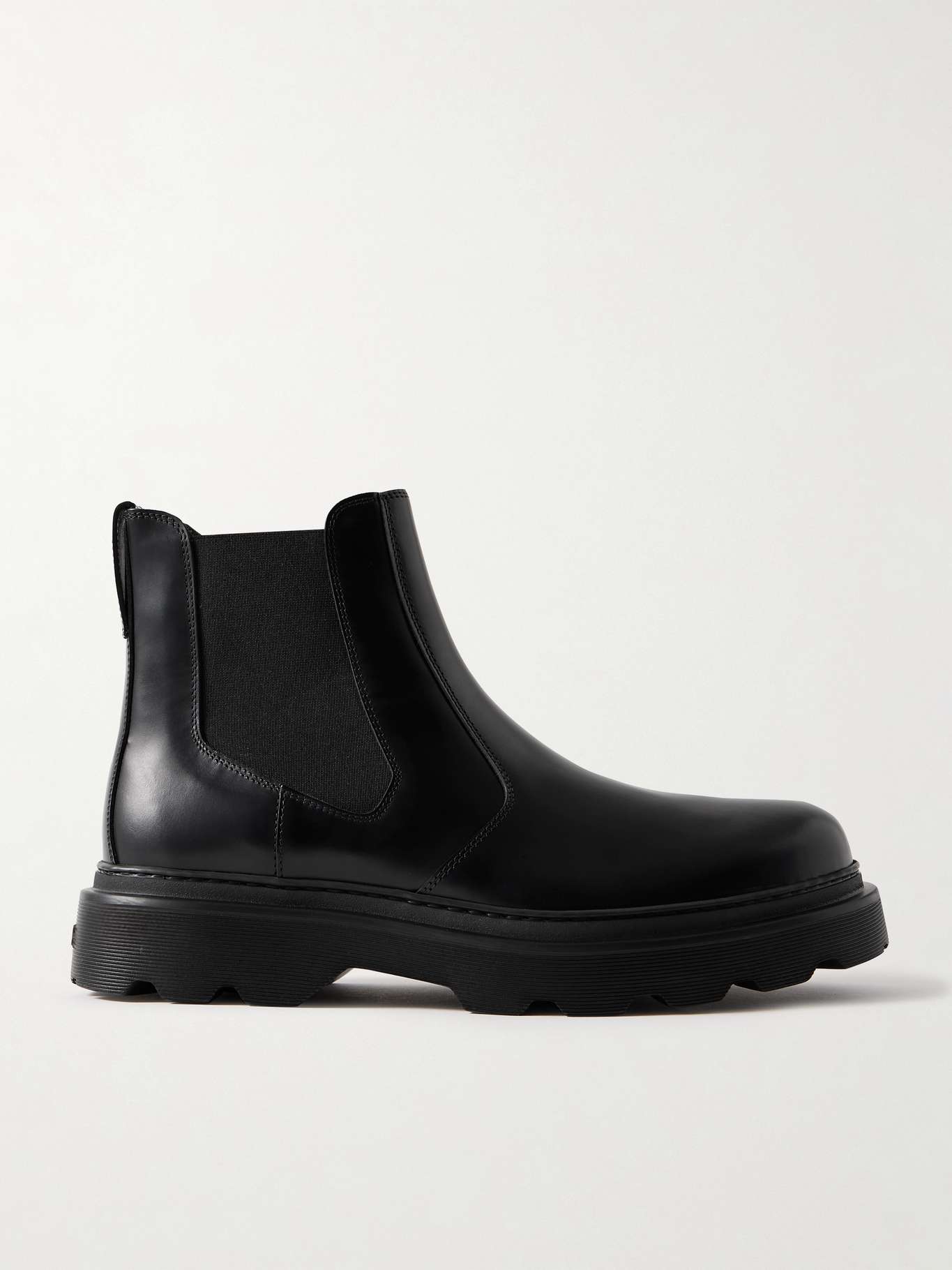 عمدَت Tod's إلى تحديث بوت تشيلسي الكلاسيكي بنعل سميك ومتين من المطاط في هذا الإصدار - لاحظ كيف تحاكي الحافة الجانبية حبيبات الحصى التي تشتهر بها العلامة. وهو مصنوع في إيطاليا من الجلد باللون الأسود ويمتاز بطرف شد لتسهيل انتعاله وخلعه.
