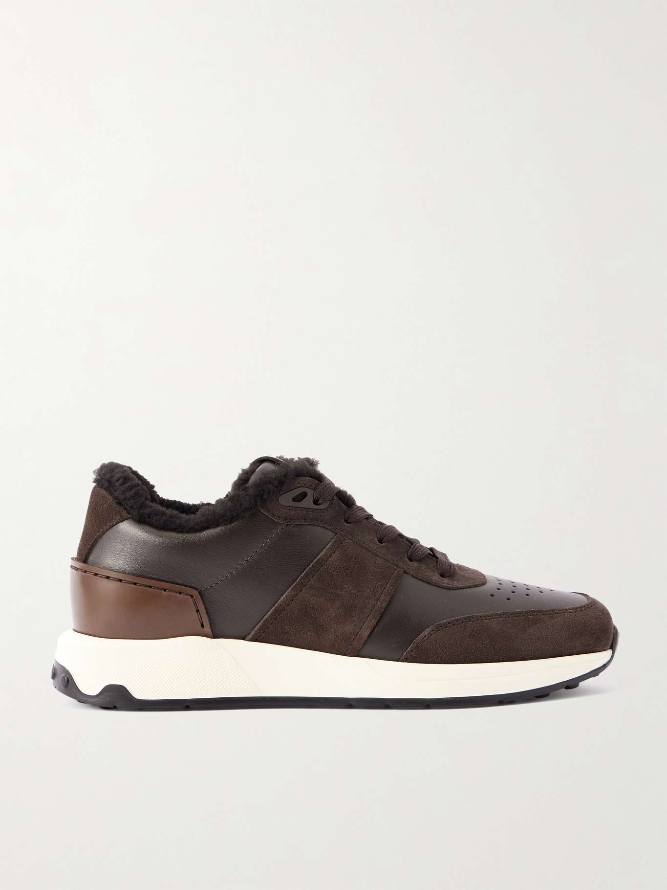 - جلد سويد وجلد (عجل) وصوف ناعم (حمل) باللون البني الداكن
