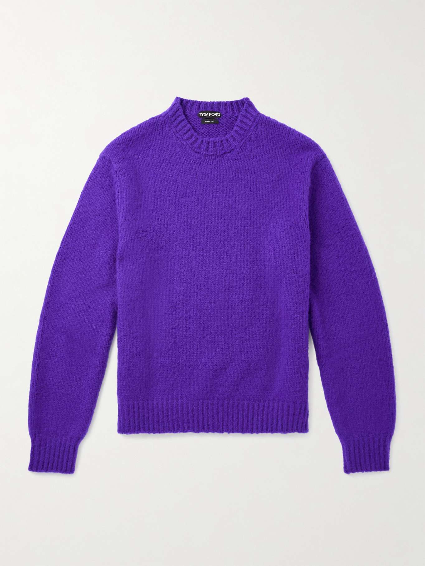يتطلب اختيار الألوان تنسيقاً مدروساً لإطلالتك. صُممت هذه الكنزة من توقيع TOM FORD باللون الأرجواني النابض بالحيوية، وهي محبوكة في إيطاليا من الكشمير المُمشط الناعم بحبكة سميكة بثلاث غرزات. يُمكنك تنسيقها مع بنطال بلون محايد.