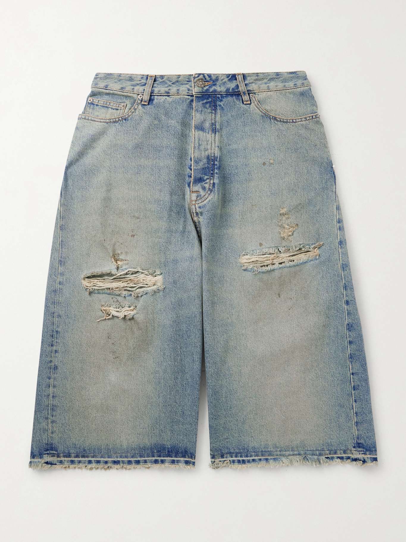 424 شورت من الدنيم بأرجل مستقيمة وتأثير معتق