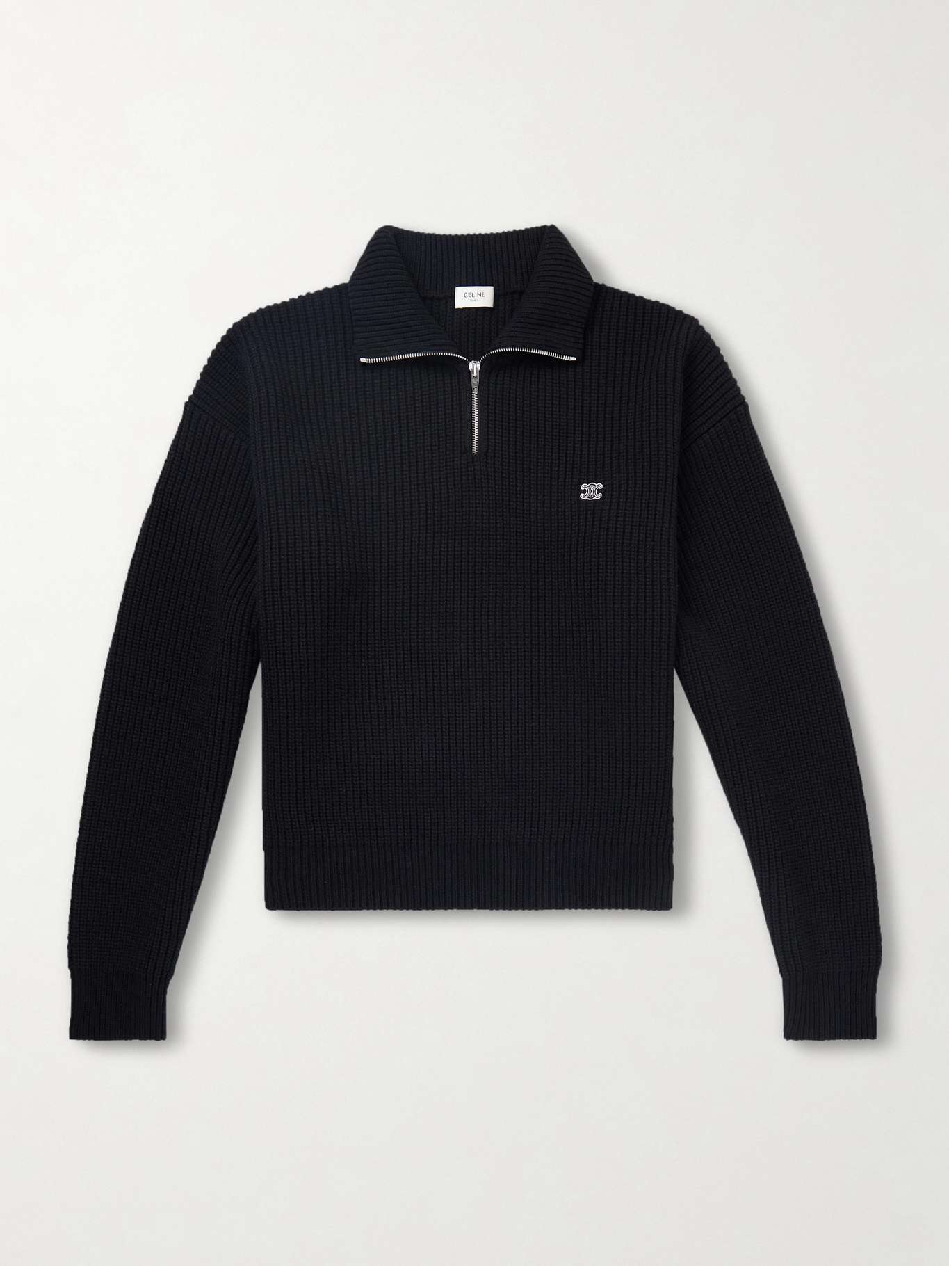 CELINE كنزة بنصف سحاب من الصوف المُضلّع مزينة بشعار العلامة