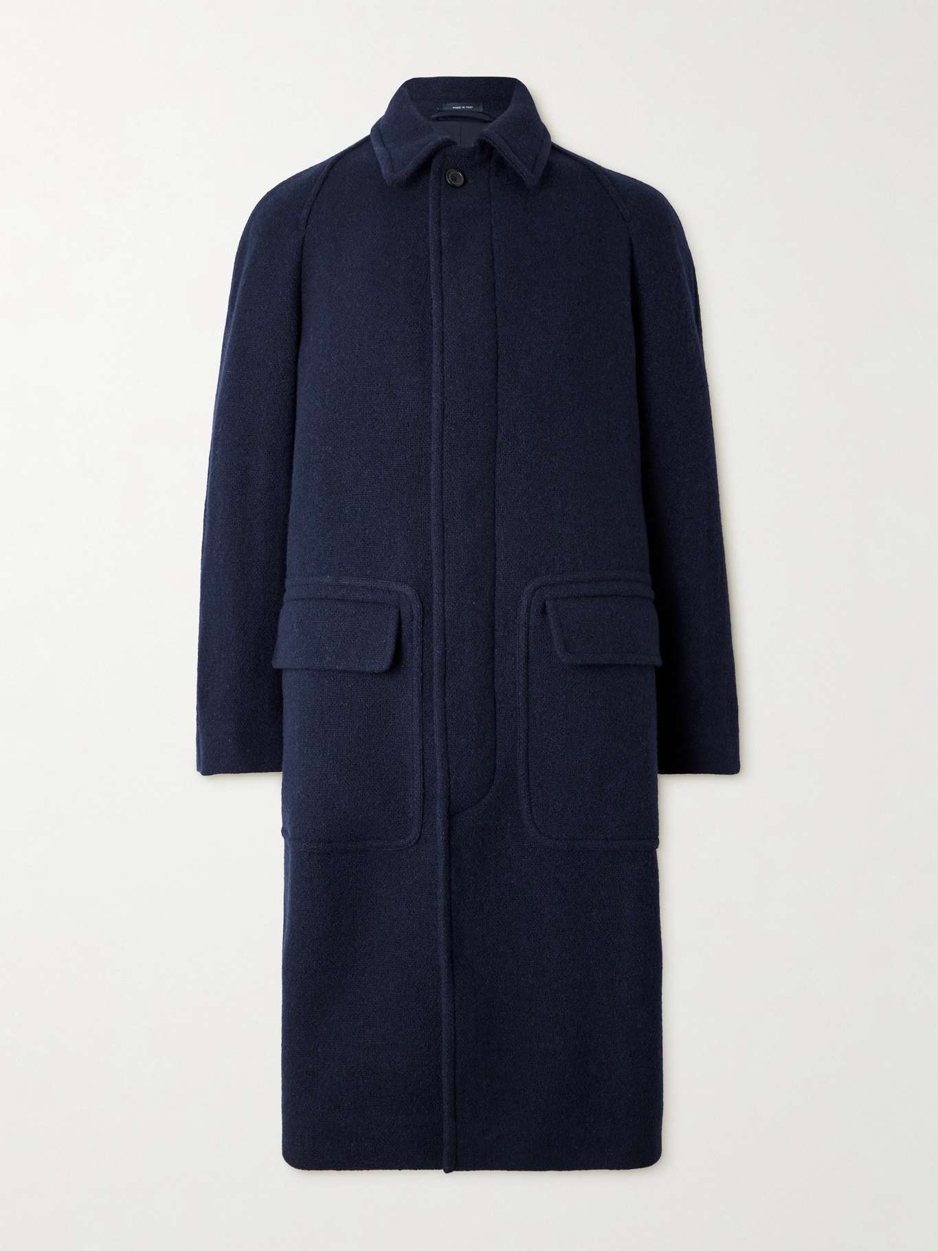 صُمم هذا الجاكيت من توقيع Drake's على غرار أنماط بالمكان الكلاسيكية الفضفاضة مع أزرار مخفية. صُنع في إيطاليا من الصوف بقصة بدون درزات وواسعة لتتمكن من تنسيقه فوق قطع أخرى.