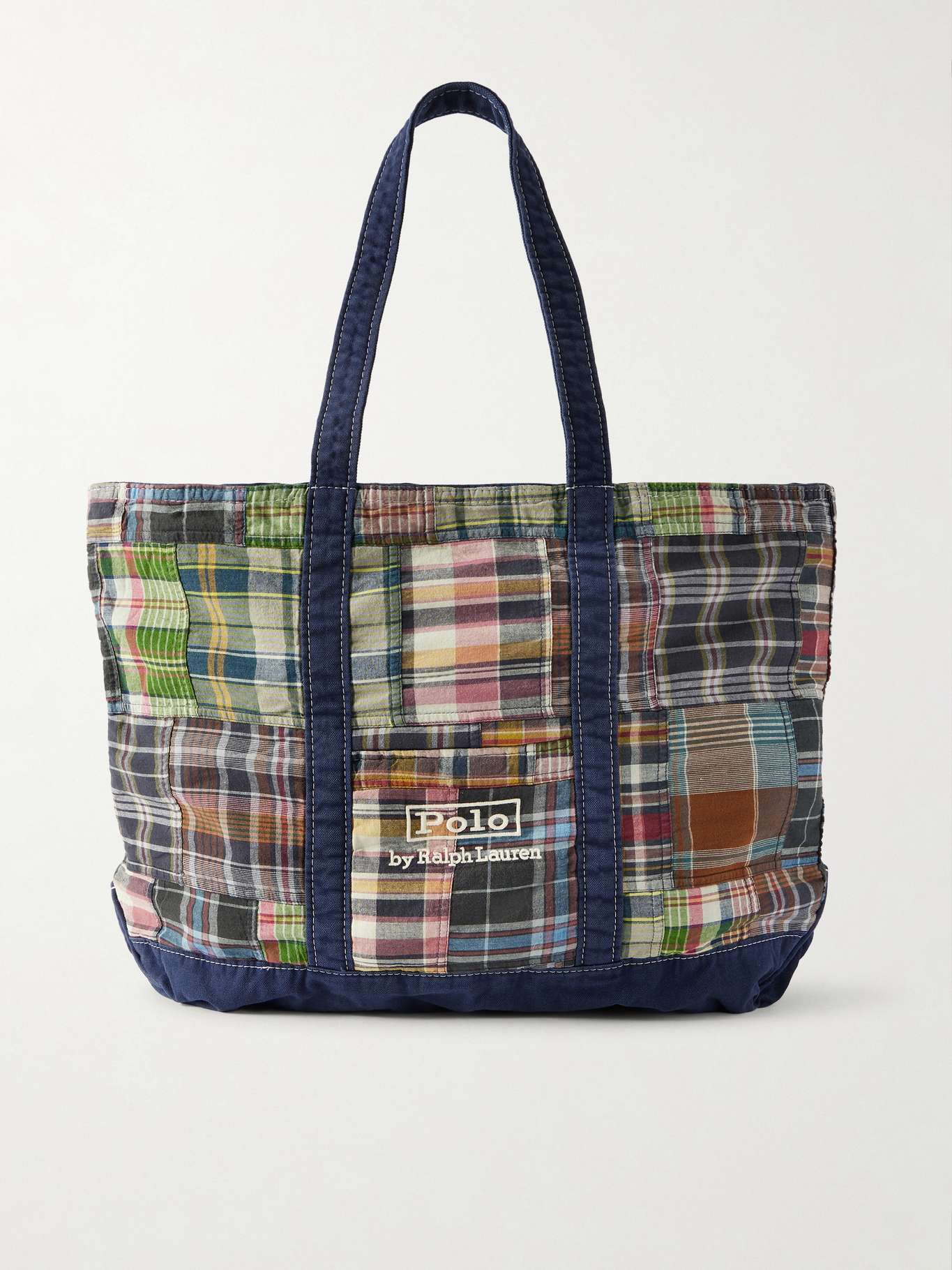 POLO RALPH LAUREN حقيبة توت كبيرة من قطن مدراس بنقشة المربعات بنمط الترقيع