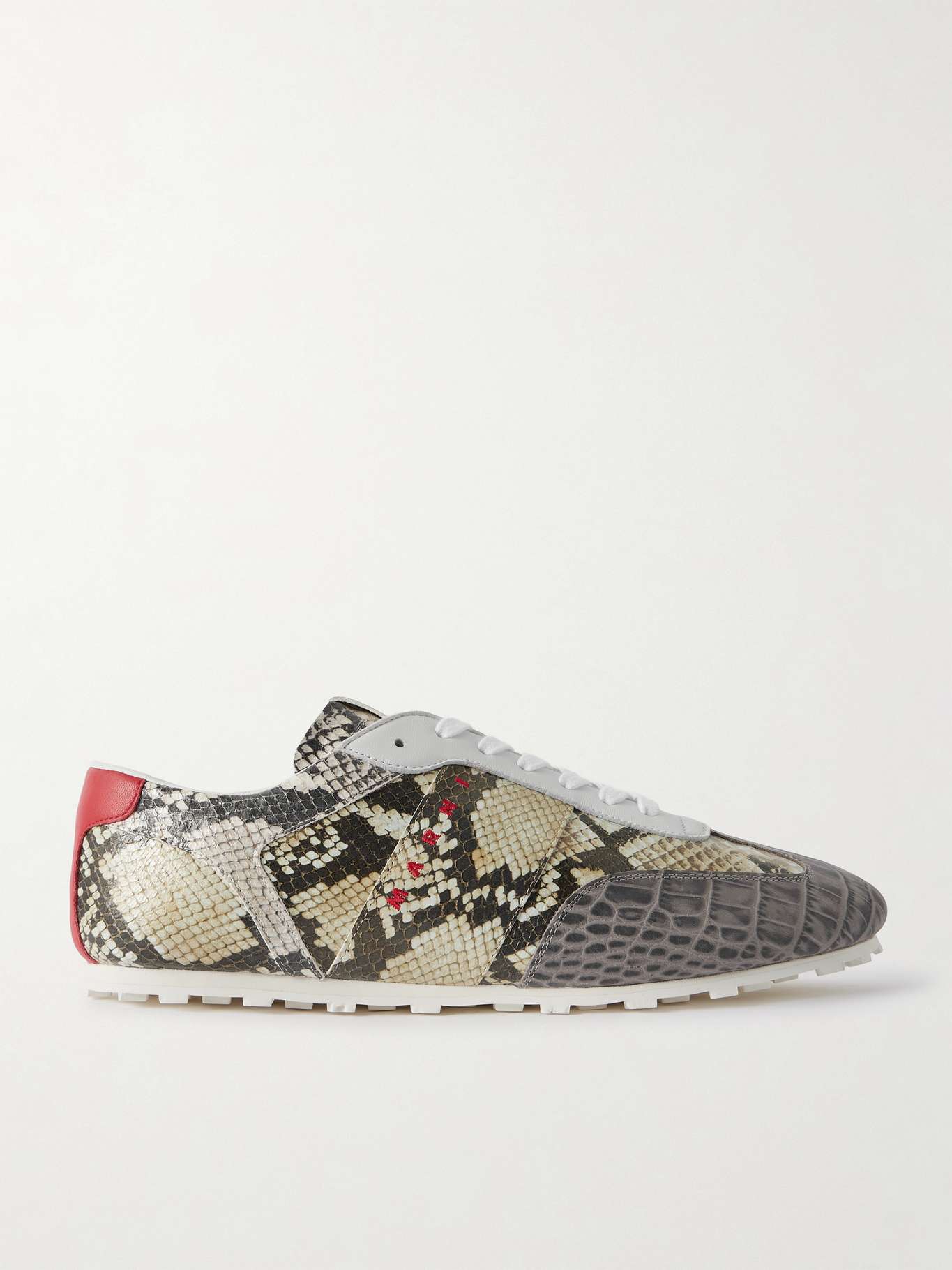 MARNI حذاء سنيكرز من الجلد بنقشة جلد الثعبان ونقشة جلد التمساح مطرّز بشعار العلامة