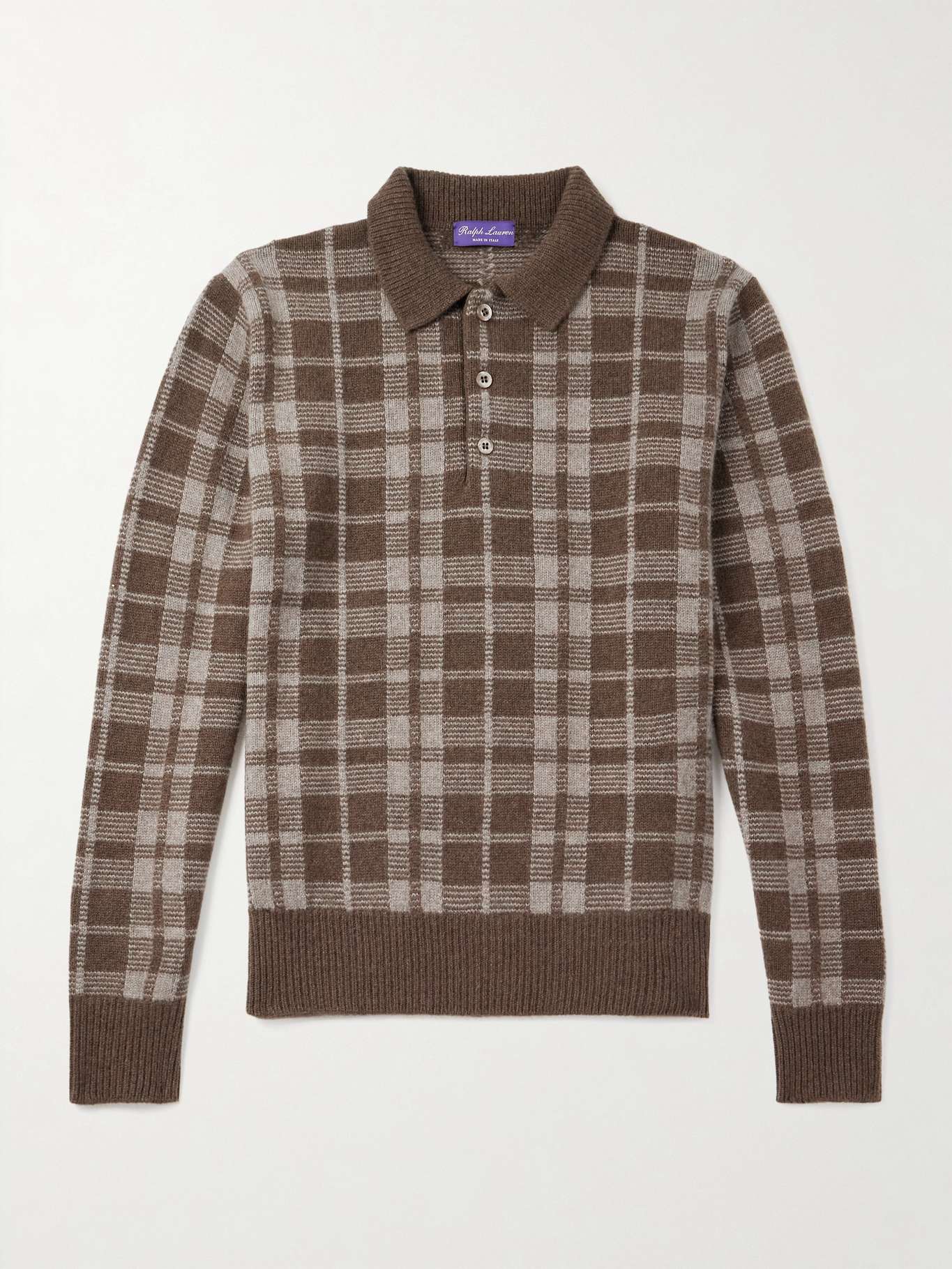 RALPH LAUREN PURPLE LABEL كنزة بولو من الكشمير ممشط بنقشة من المربعات
