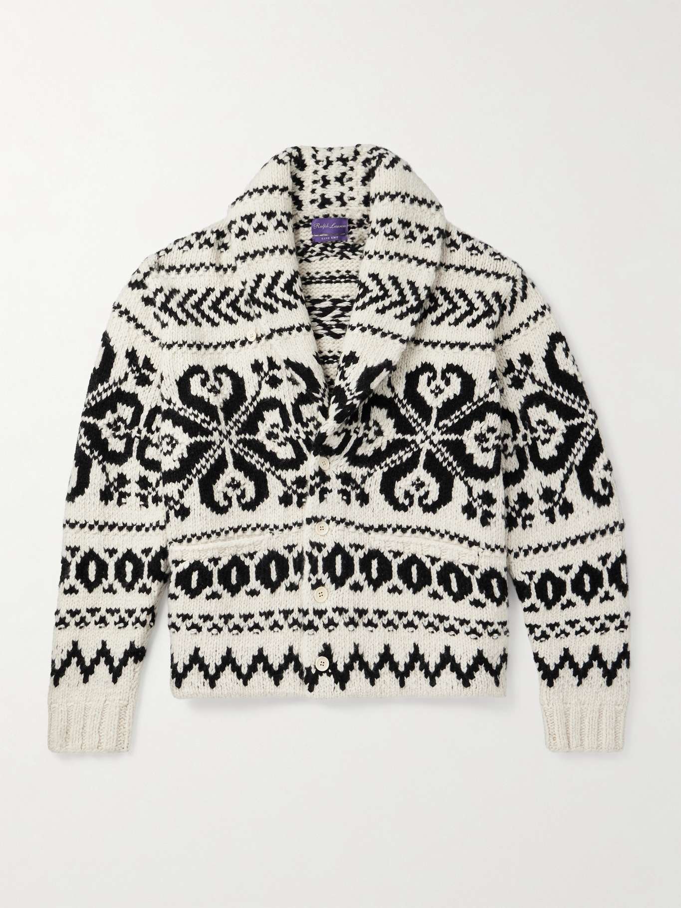 RALPH LAUREN PURPLE LABEL كارديغان من الكشمير بتصميم المربعات بحبكة الجاكار وبياقة بأسلوب الشال