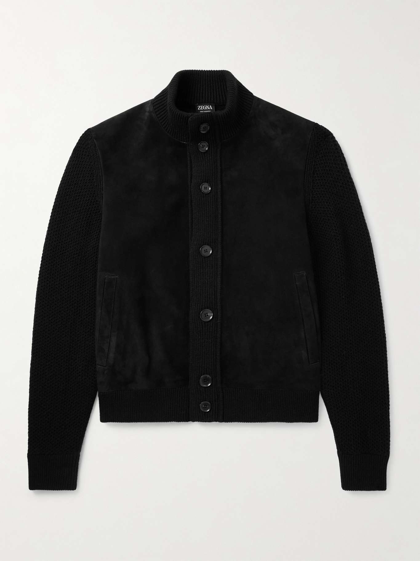 ZEGNA جاكيت نافر من الكشمير وبحاشية من جلد السويد
