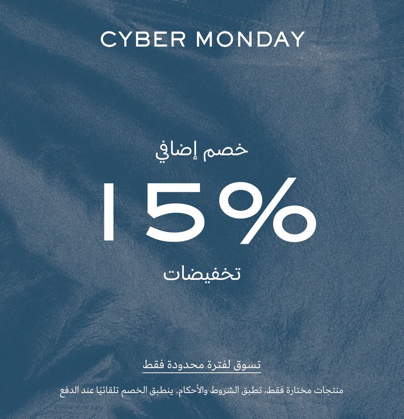 Cyber Monday: خصم إضافي %15. تسوق ليومٍ واحدٍ فقط