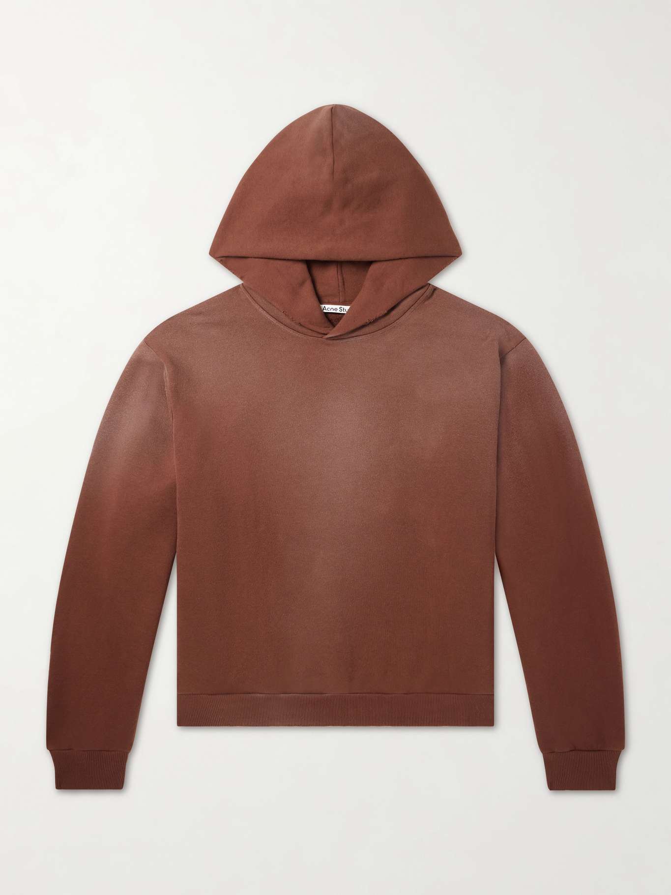 ACNE STUDIOS كنزة هودي Franziska من مزيج قطن الجيرسي المصبوغ بعد الحياكة مزينة بطبعة شعار العلامة وبتأثير معتق