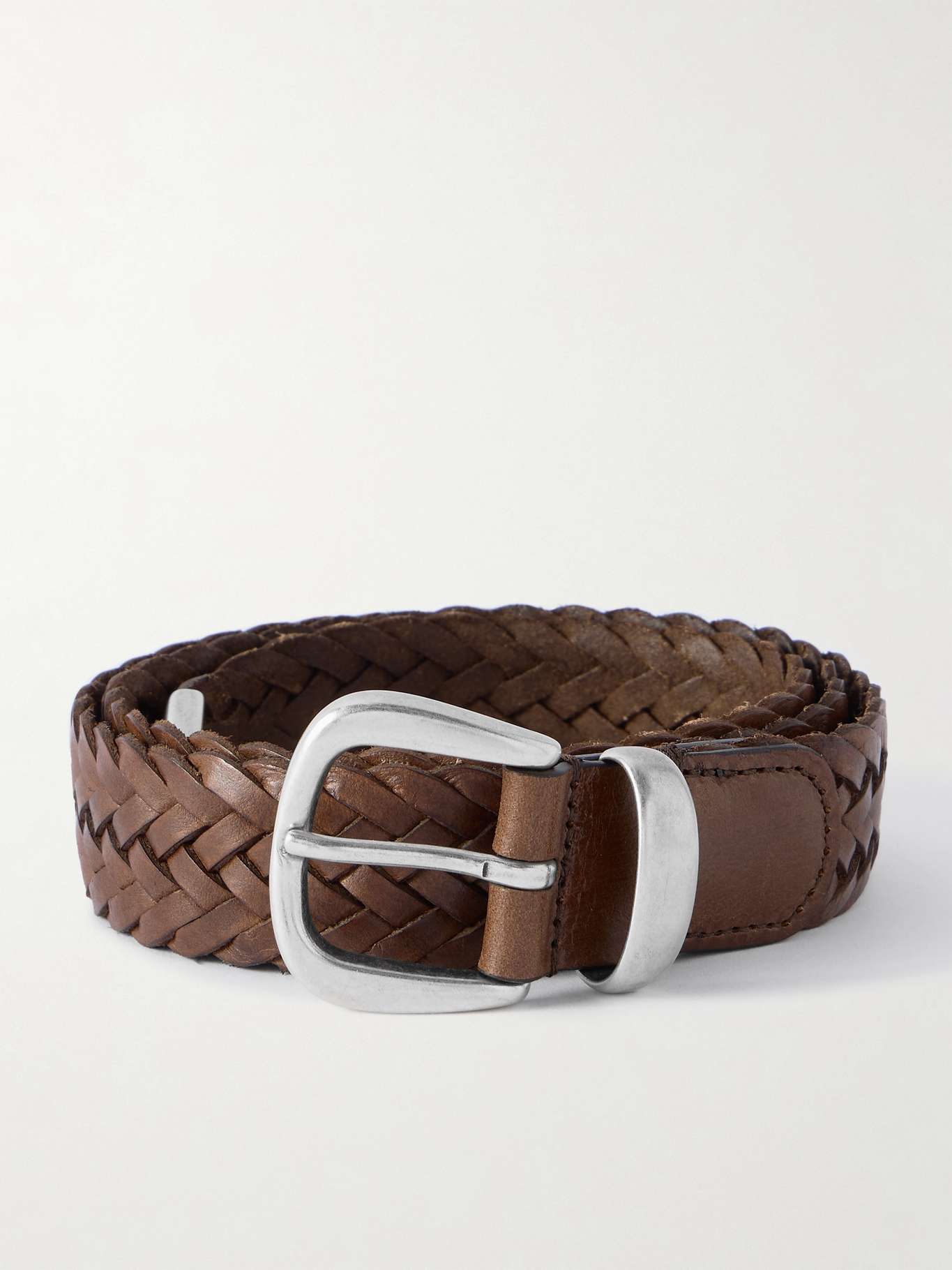 تُقدم علامة Anderson's هذا الحزام الإيطالي المحبوك من شرائط من الجلد - بتقنية مميزة لتقوية المادة وتسهيل الحصول على المقاس المثالي. تم تزويده بنهاية وإبزيم فضي اللون بلمسة مصقولة ليبدو قديماً.