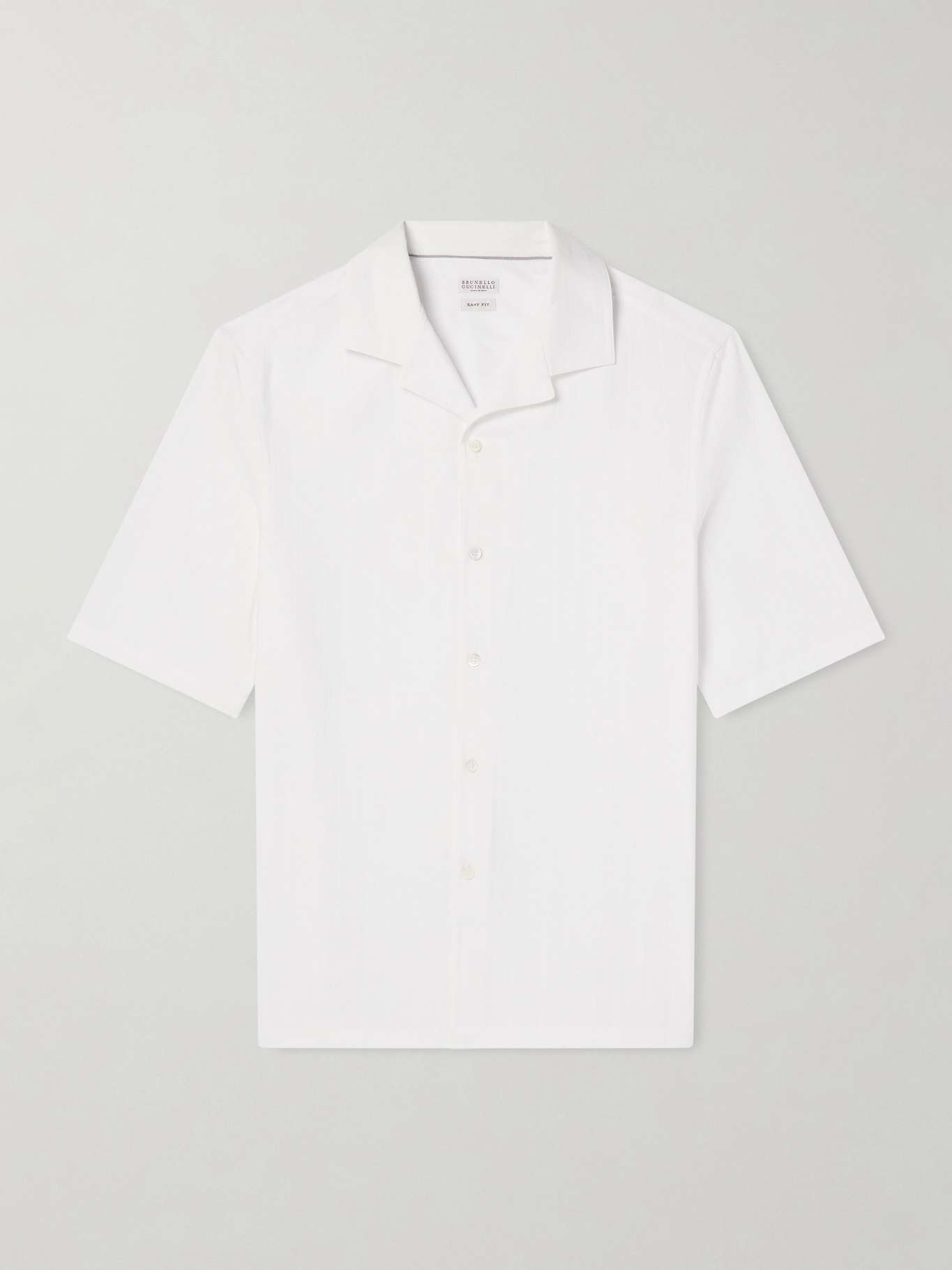 BRUNELLO CUCINELLI قميص من القطن النافر بياقة بطيّة