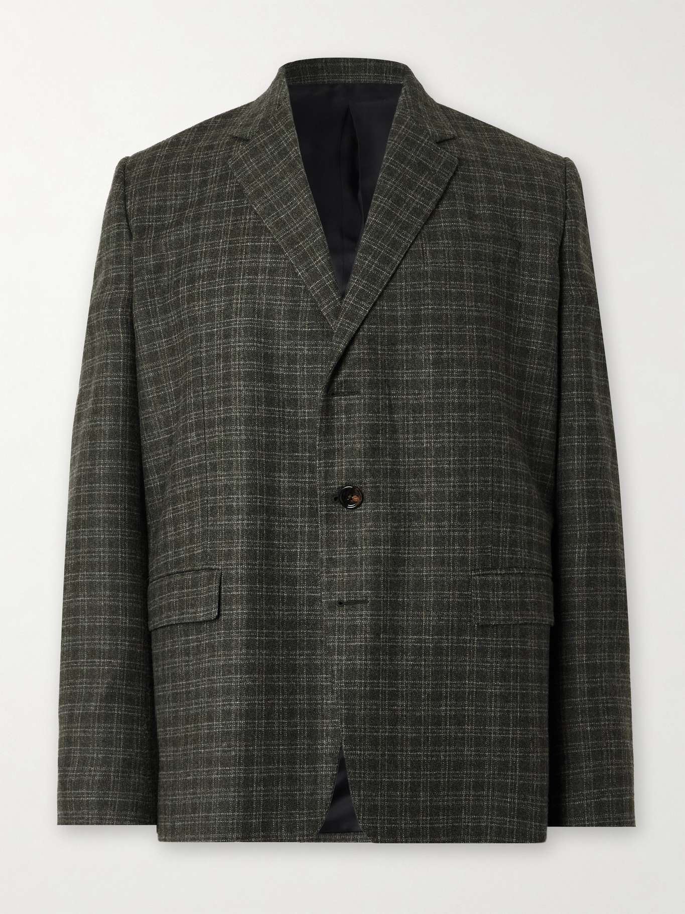 تُقدم علامة CELINE HOMME مجموعة 'The Bright Young' الخاصة بربيع صيف 2025 والمليئة بتفاصيل مستوحاة من التصاميم الرسمية البريطانية في العشرينيات. صُنع هذا البليزر بقصة مربعة مع أكتاف مبطنة لقصة هندسية، وزُين بنقشة مربعات بألوان متناغمة. يُمكنك تنسيقه مع أحد تي شيرتات العلامة المزينة بشعارها.