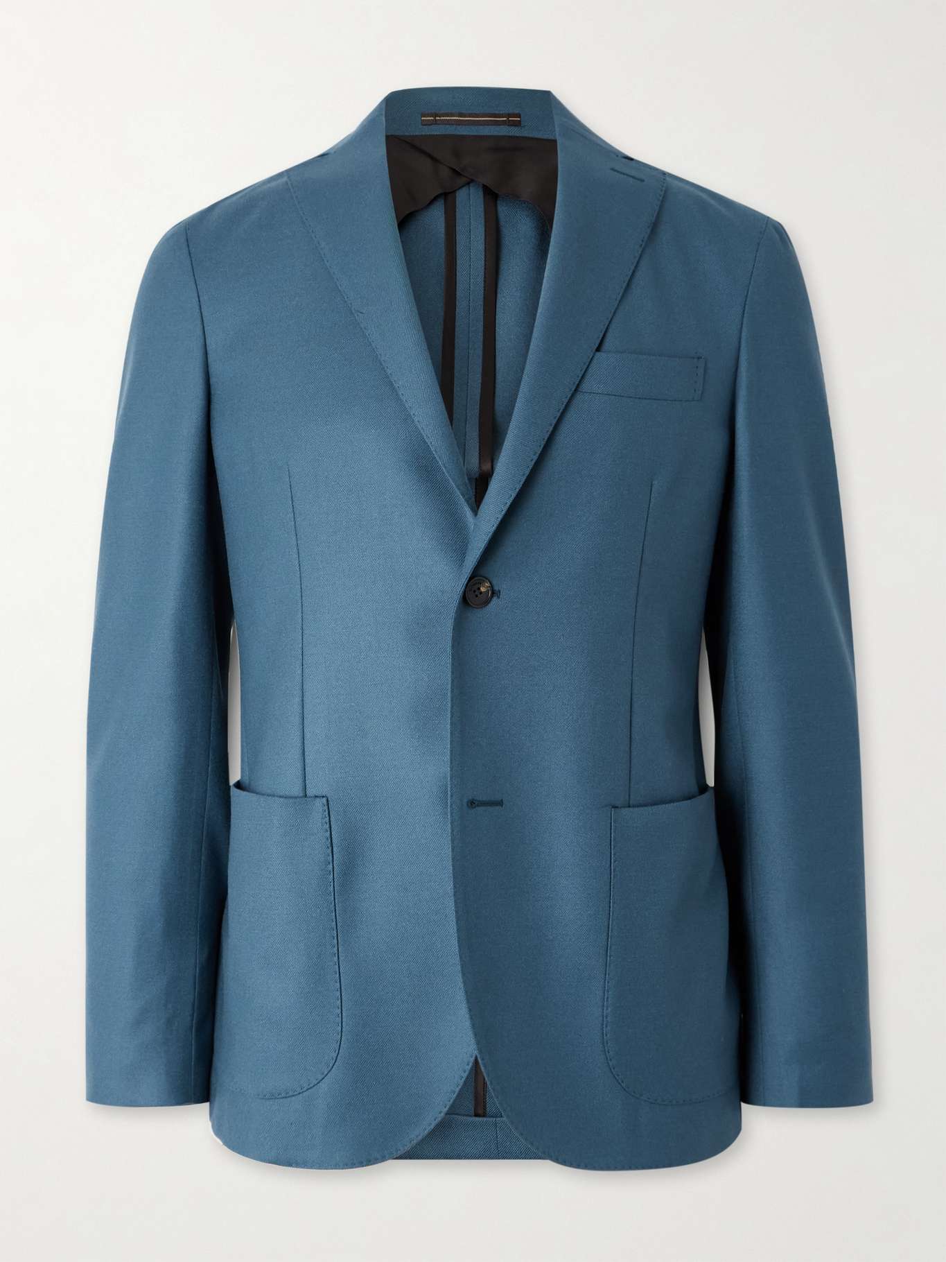 تتعاون علامة Incotex مع ورشات متخصصة حول إيطاليا، حيث تضمن الخبرات التي تمتد على مر أجيال الاهتمام الفائق إلى التفاصيل. صُمم هذا البليزر مع طيات صدر مشقوقة بمكان أعلى من المعتاد، وهو مصنوع بقصة ضيقة من مزيج صوف الفلانيل وزُين بدرزات دقيقة باستخدام إبرة واحدة.