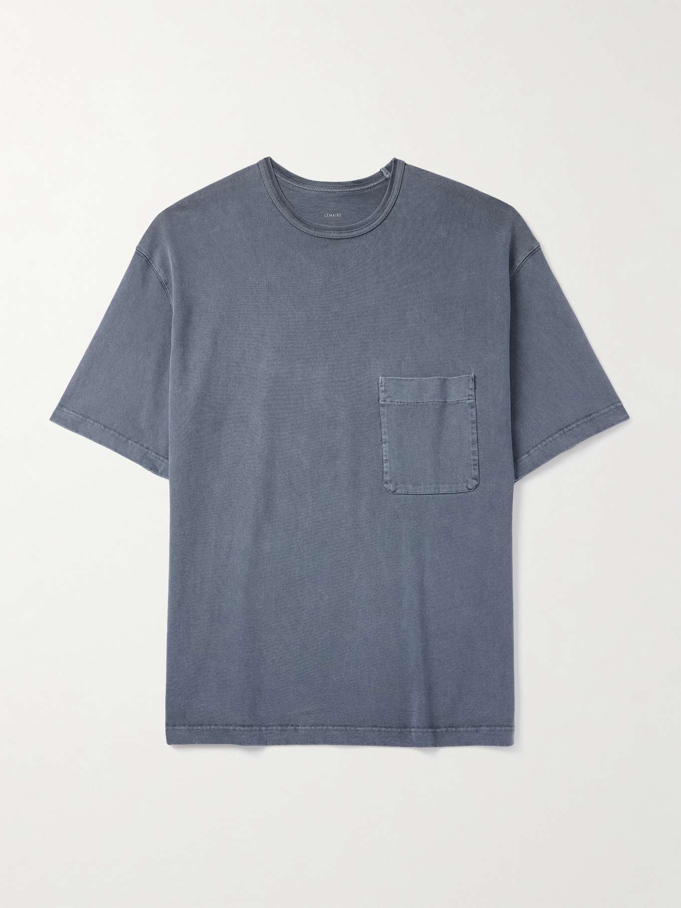 تُقدم علامة LEMAIRE هذا التي شيرت المصنوع من قطن الجيرسي ثقيل الوزن والمصبوغ بعد الحياكة لتعزيز النعومة. صُمم بقصة مربعة مع درزات أكتاف منخفضة بعض الشيء وأكمام عريضة، كما تم تزويده بجيب مربع وحيد عند الصدر.
