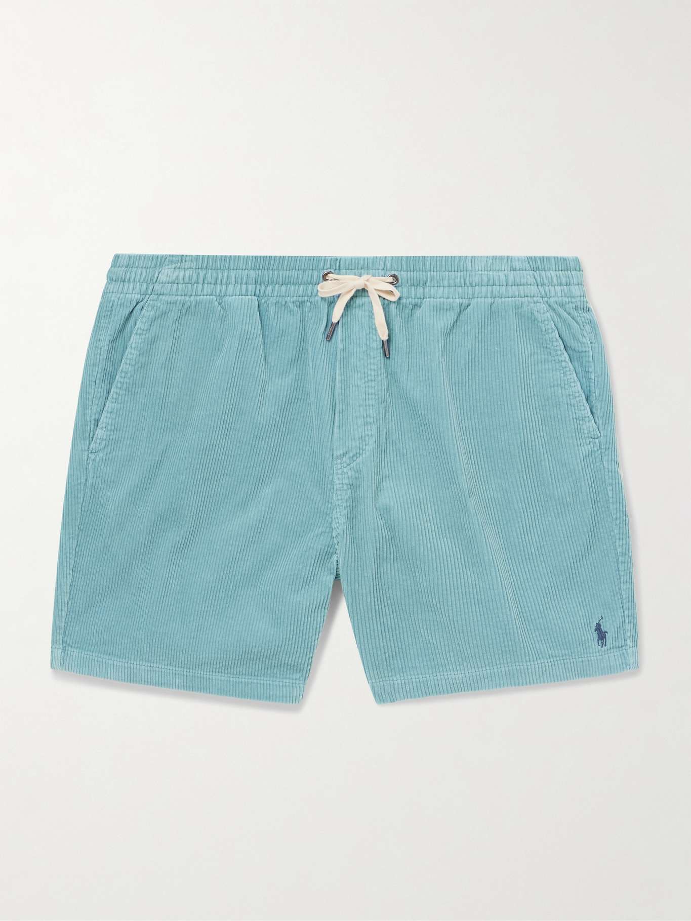 POLO RALPH LAUREN شورت من قطن المخمل المضلع بقصة مستقيمة الساقين ورباط شد مطرز بشعار العلامة