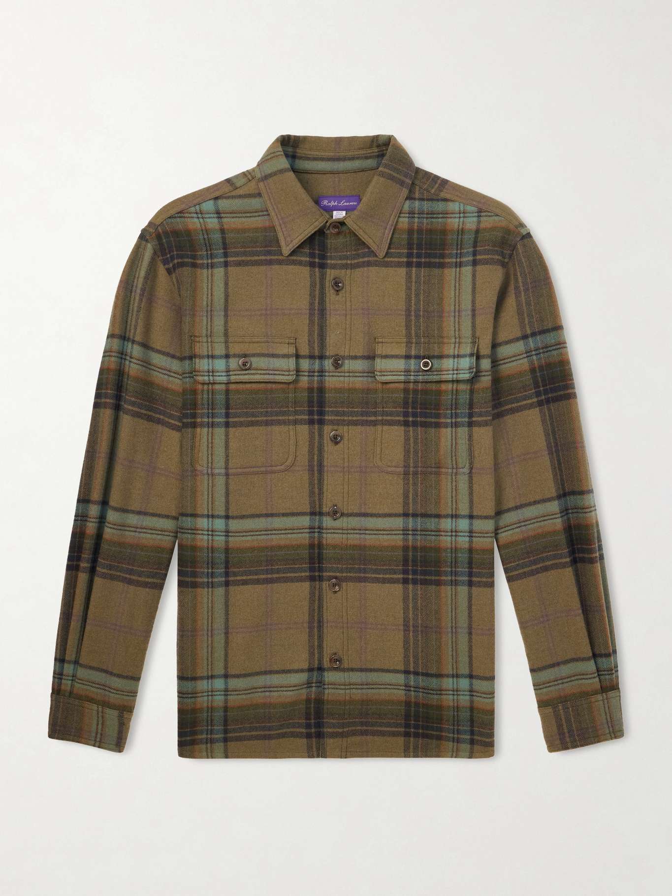 RALPH LAUREN PURPLE LABEL قميص خارجي بنقشة المربعات من الفلانيل بمزيج الكشمير والصوف