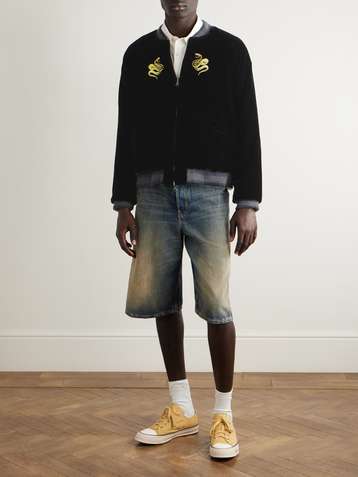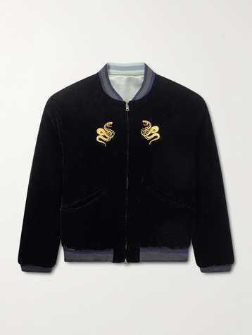Tora Ni Fuji wendbare Bomberjacke aus Samt und Satin mit Stickereien