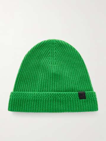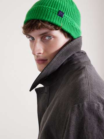 Beanie aus Kaschmir in Rippstrick mit Logoapplikation