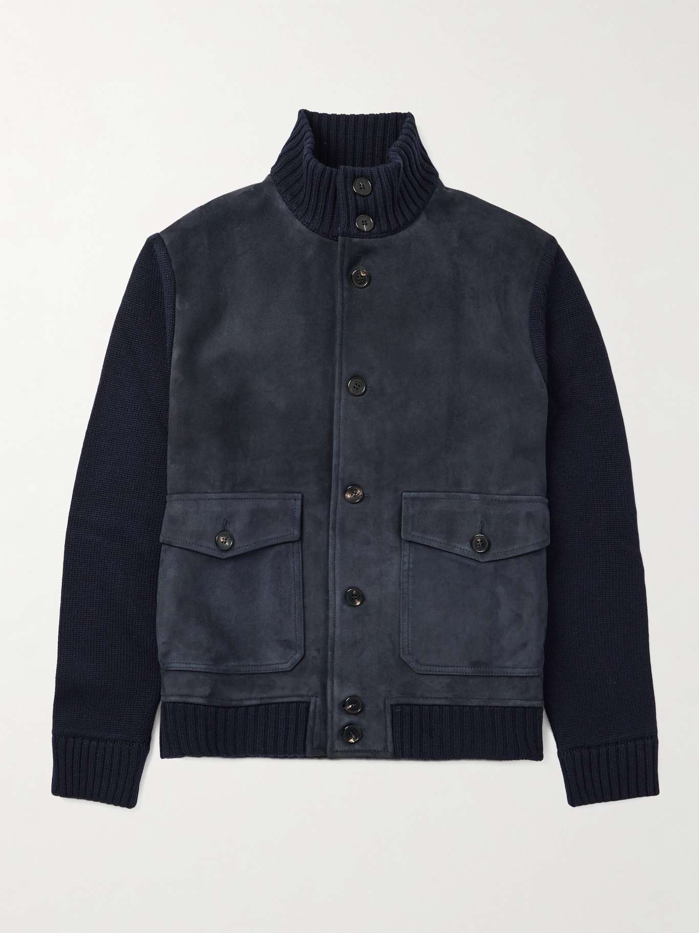 - Geschmeidiges, nicht elastisches Veloursleder mit Strickeinsätzen